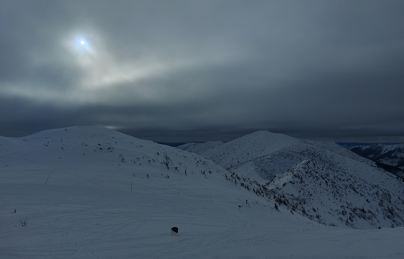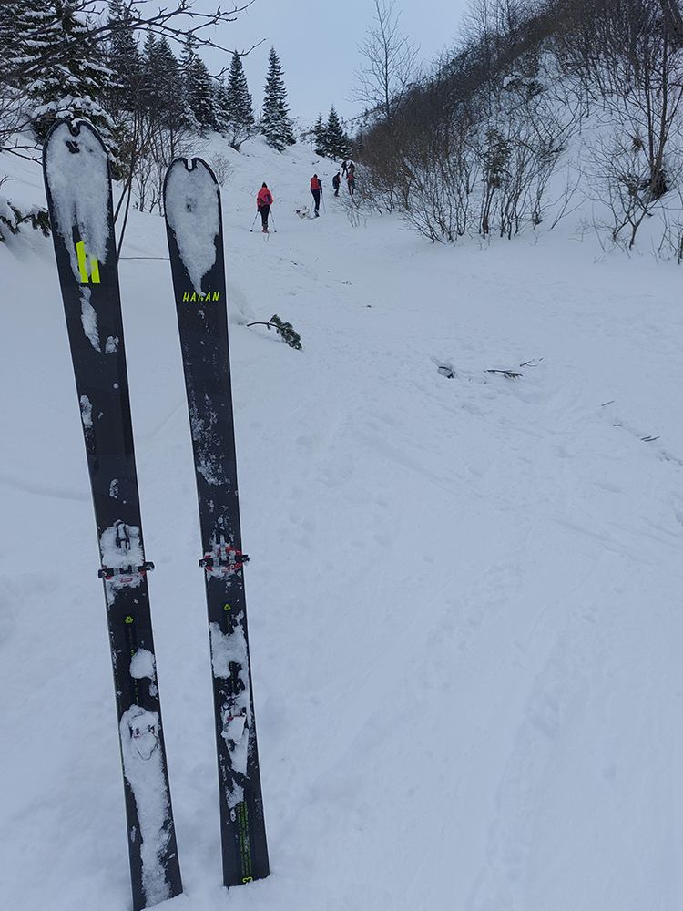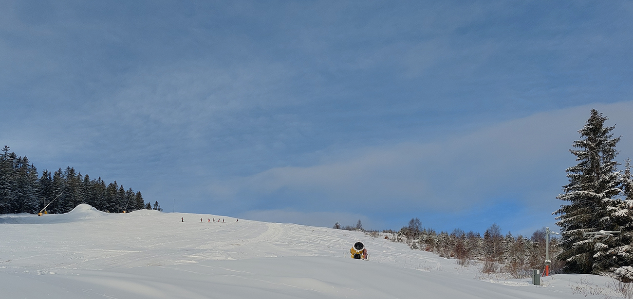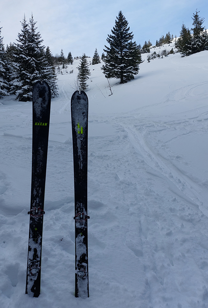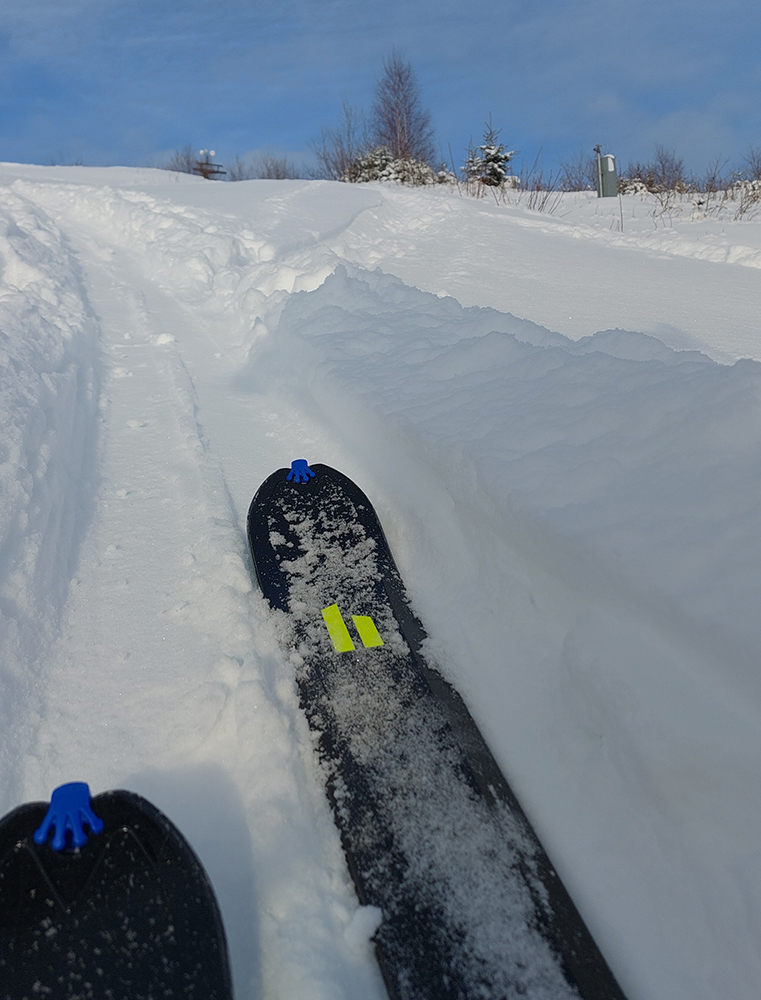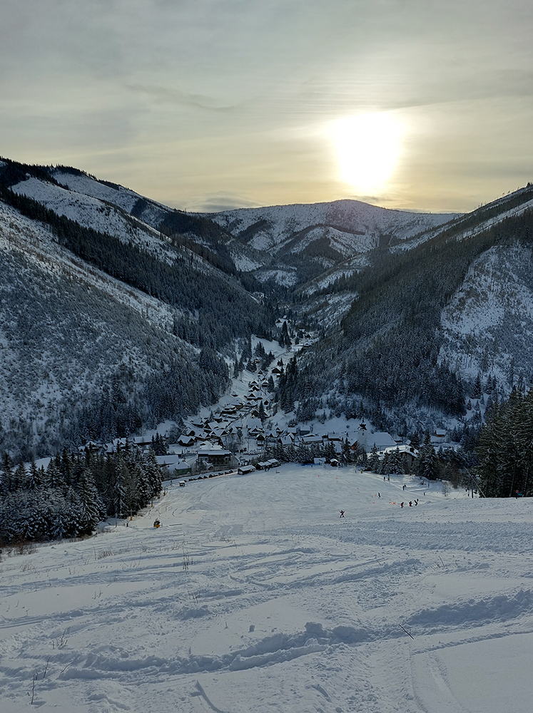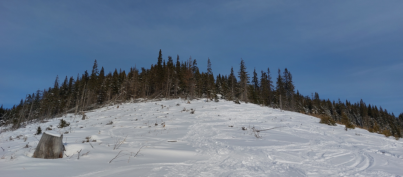 Už začiatok zjazdovky z Vyšnej Boce je strmý a takých úsekov ešte zopár bude, tak nahadzujem „celoplošné“, presne na lyže orezané bezlepkové Gecká, nech to drží. Slúžia dobre už pár rokov. Vlekári ma posielajú pekne za kraj uratrakovanej pisty, ale stopa komfortne vytvrdená, dokonca aj otočky precvičím na pár miestach. Výhľady s naberaním výšky parádnejú, len škoda, že na začiatku hlavne na vyholené svahy v okolí. Nad prvým vlekom sa sklon zmierni, nad druhým vchádzam na chvíľu do lesa (do zvyšku lesa). Vpravo Tatry, vľavo Tatry, no nádhera.