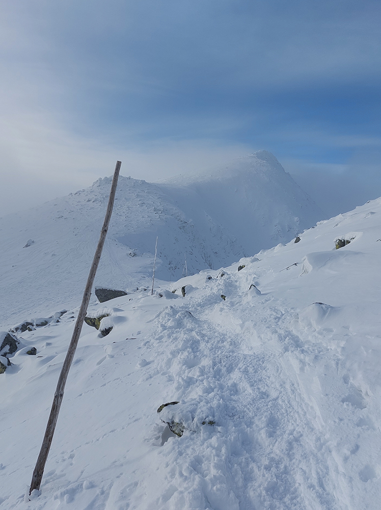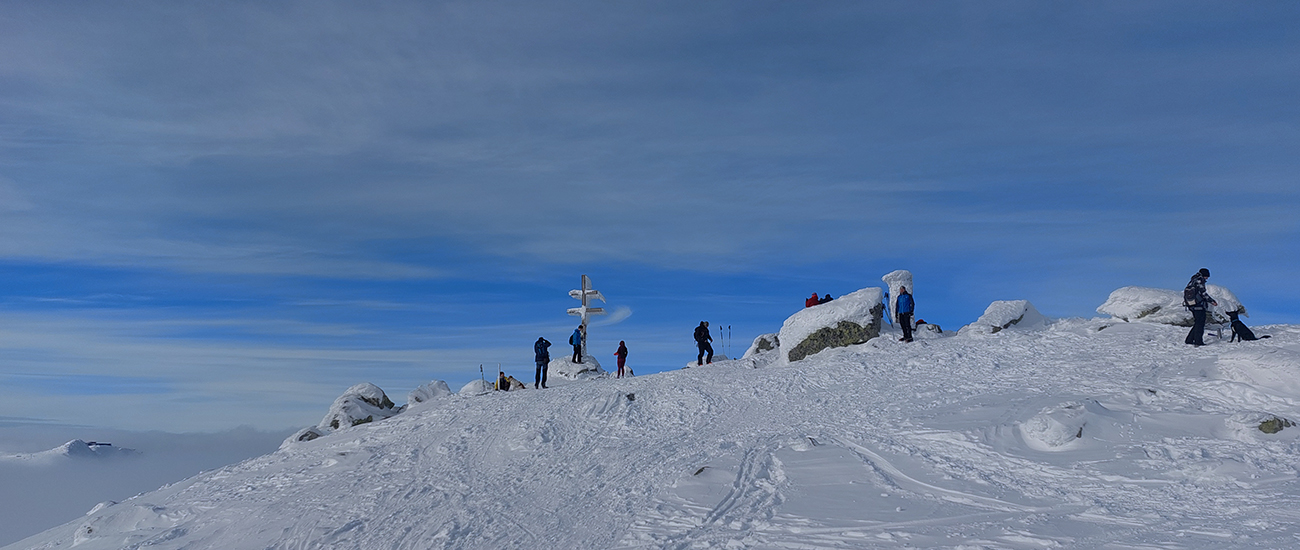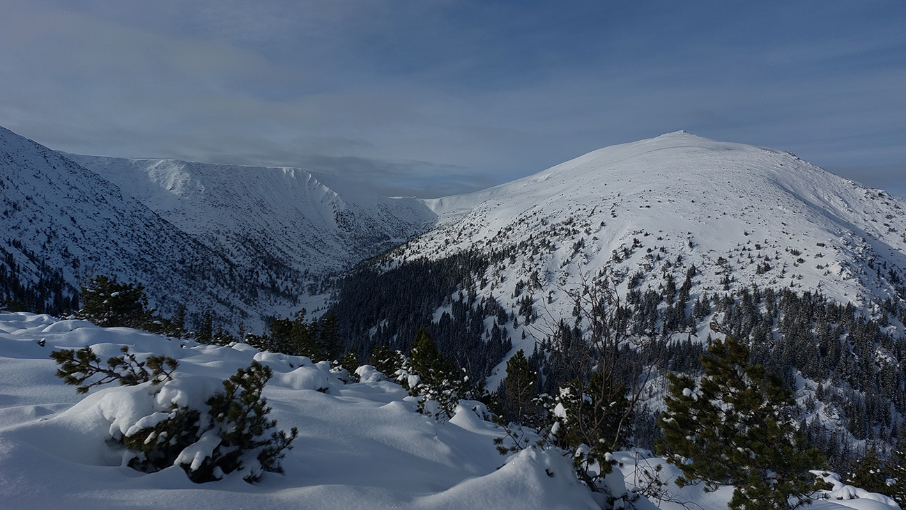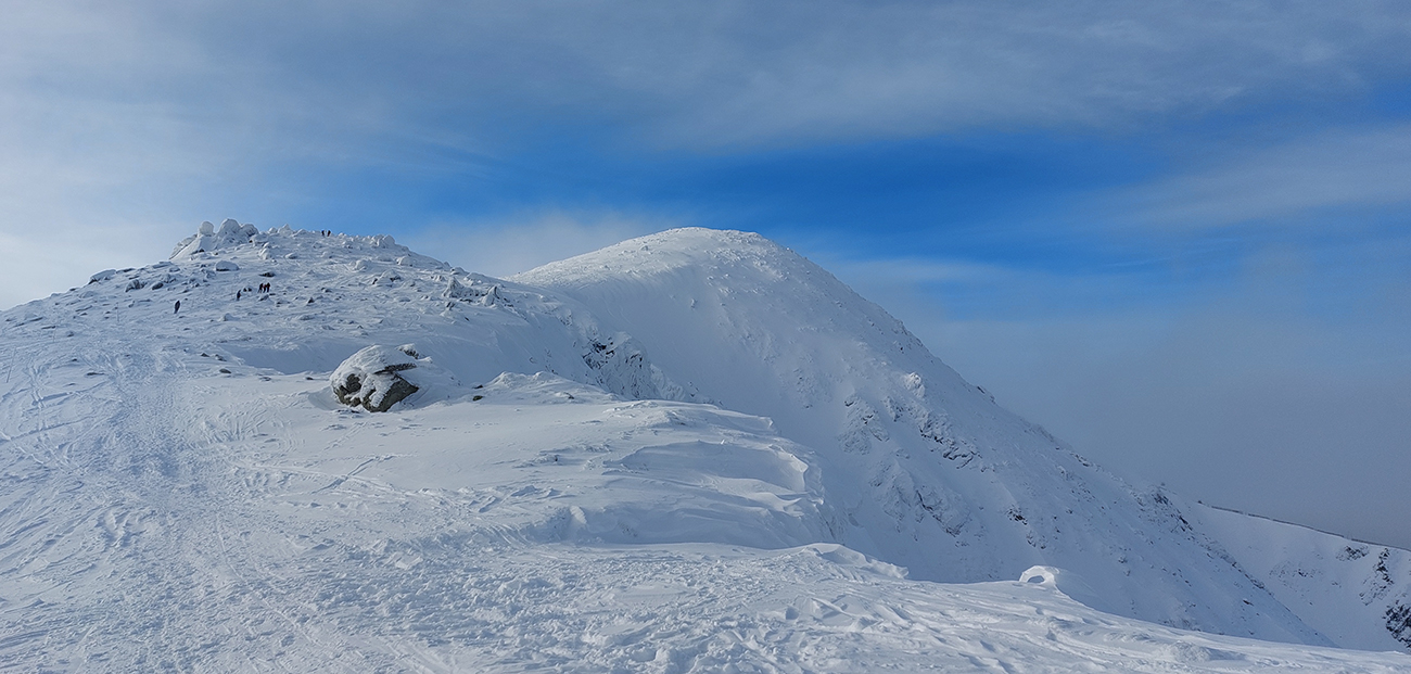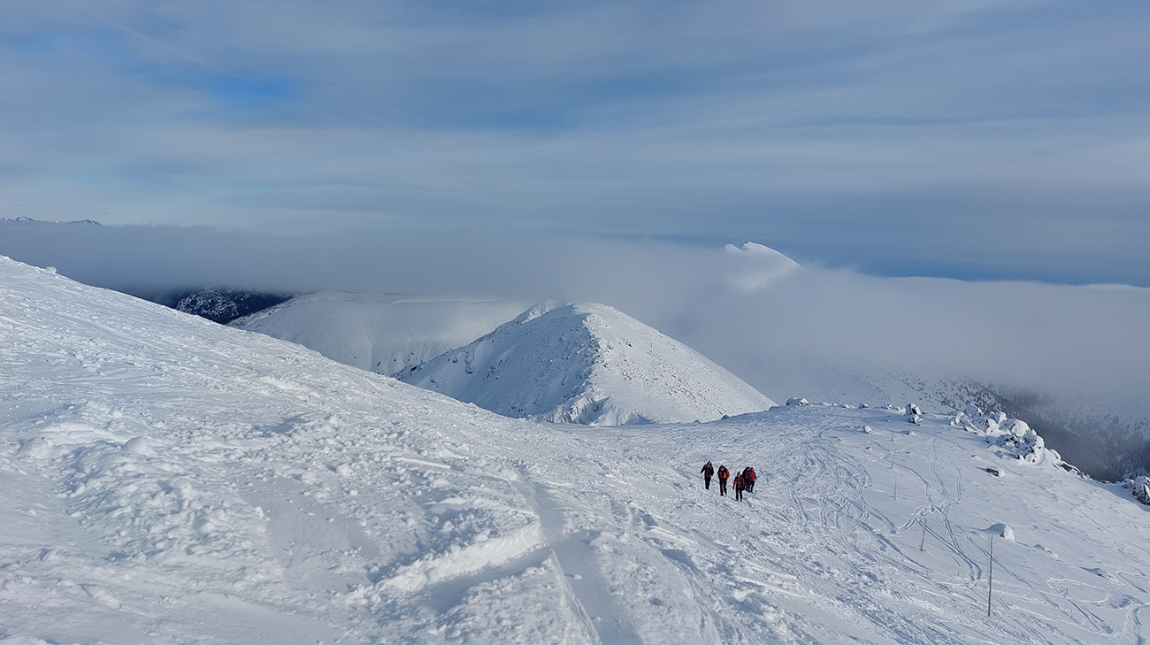 Ani na hrebeni nefúka, je síce hlboko pod nulou, ale slniečko svieti, čo viac chcieť? No, hádam len viac snehu, lebo stopa je tu často „prizdobená“ konárikmi kosodreviny, trčiacimi spod snehu. Ale na december dobré... Už sme asi zvyknutí aj na horšie, že? Túto hrebeňovú klasiku každý pozná, teraz je komfortnejšie ísť v mojom smere, viac do kopca. Aj vrchol Králičky podchádzam letným traverzom, aby som na pásoch nemusel z kopca kľučkovať pomedzi kadečo nepríjemné. Podobne posledný úsek ku chate – z toho krátkeho kopčeka to nie je príjemné, tam aj šutre trčia.