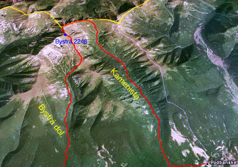 Boli sme na týchto miestach prvý raz a tak sme sa držali značiek. Z nášho smeru to znamenalo spod Blyšťa kúsok zostúpiť do Bystrého sedla a odtiaľ traverzom na Bystrú 2248 - najvyšší vrchol Západných Tatier. Až tam sme sa presvedčili, čo sme tušili, že z Blyšťa sa dá v pohode prejsť na vrchol Bystrej aj keď tam nie je značka.