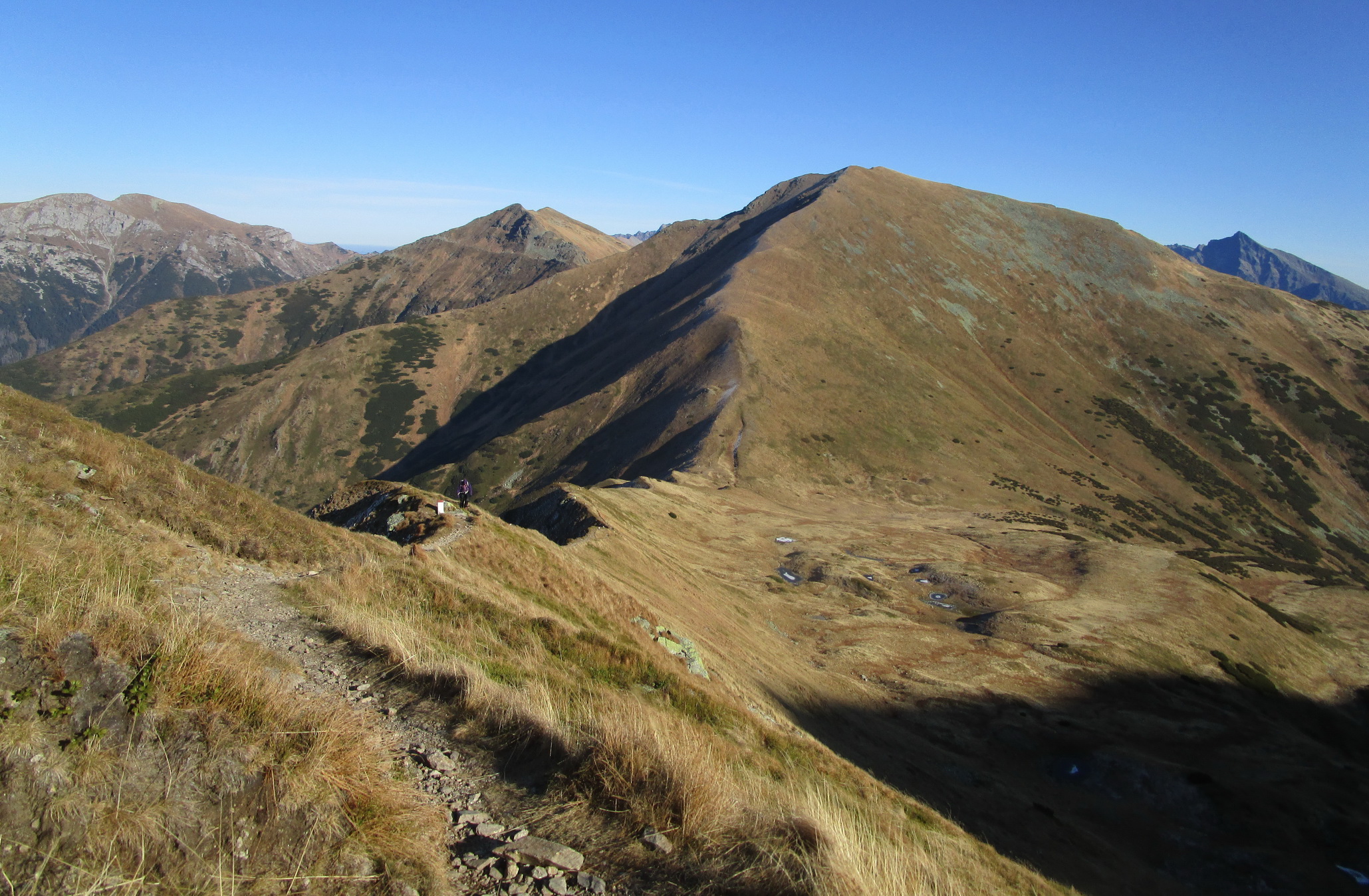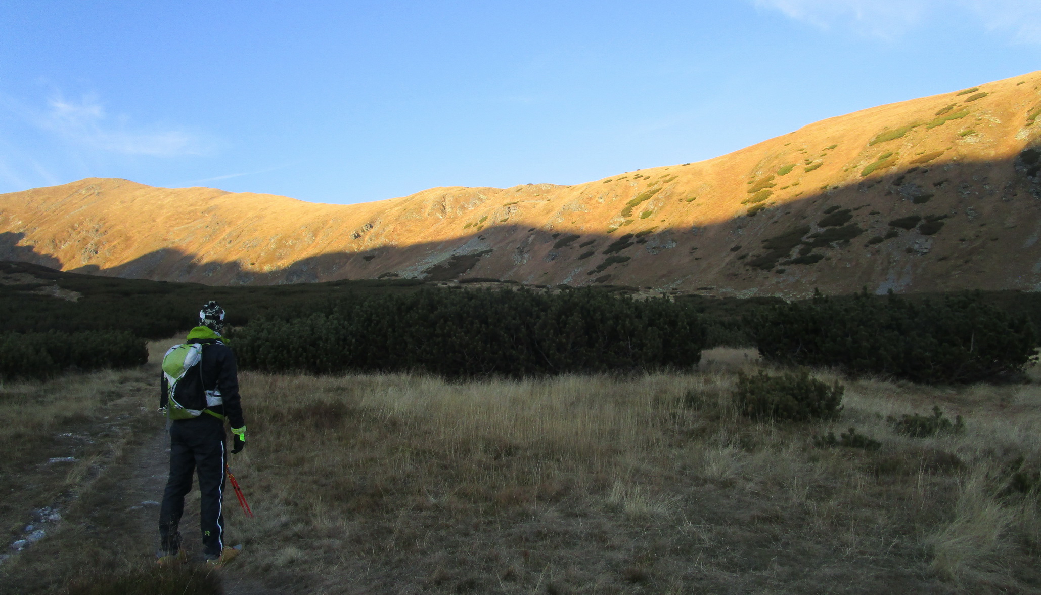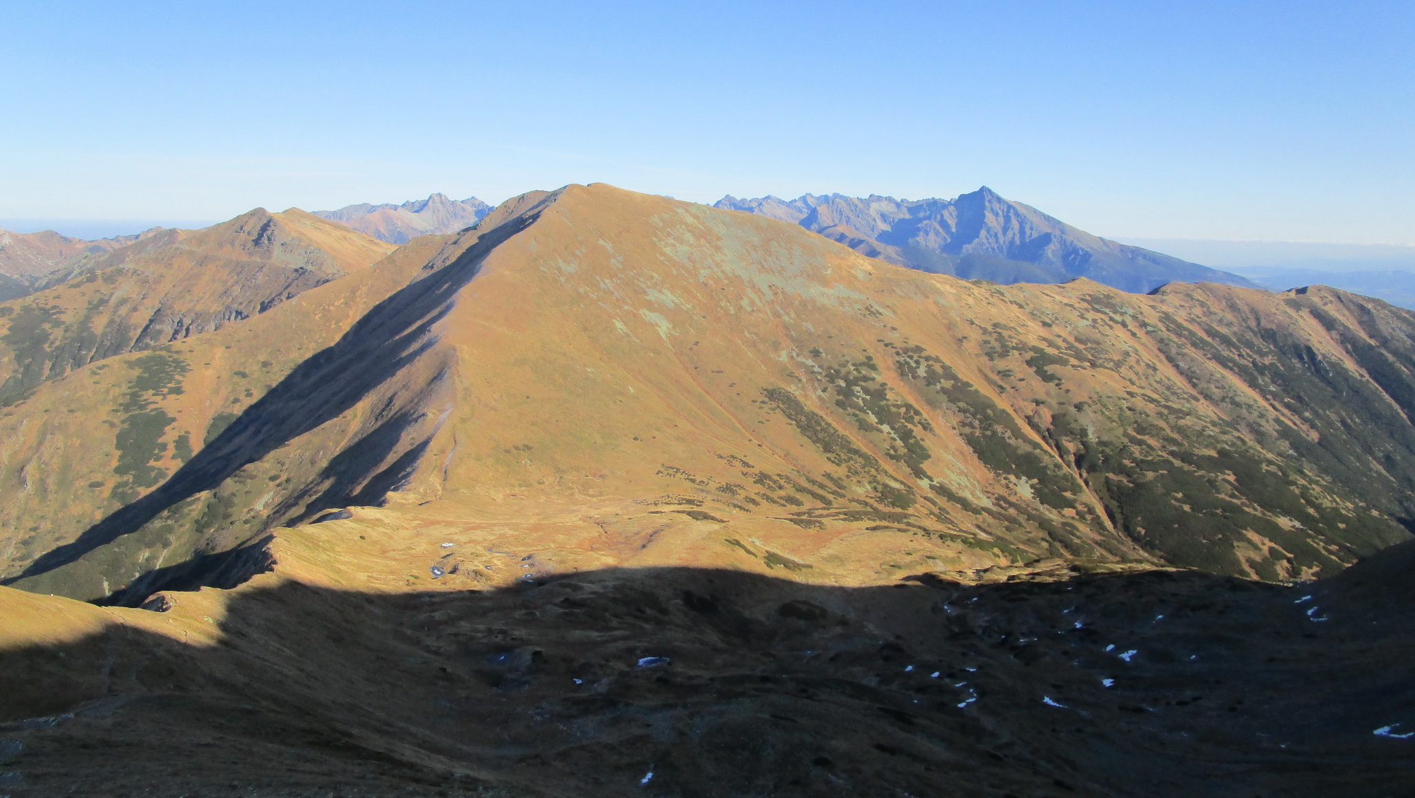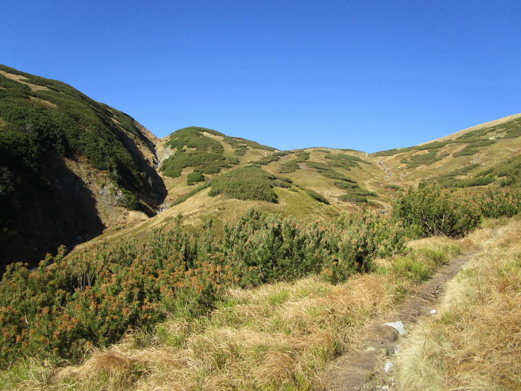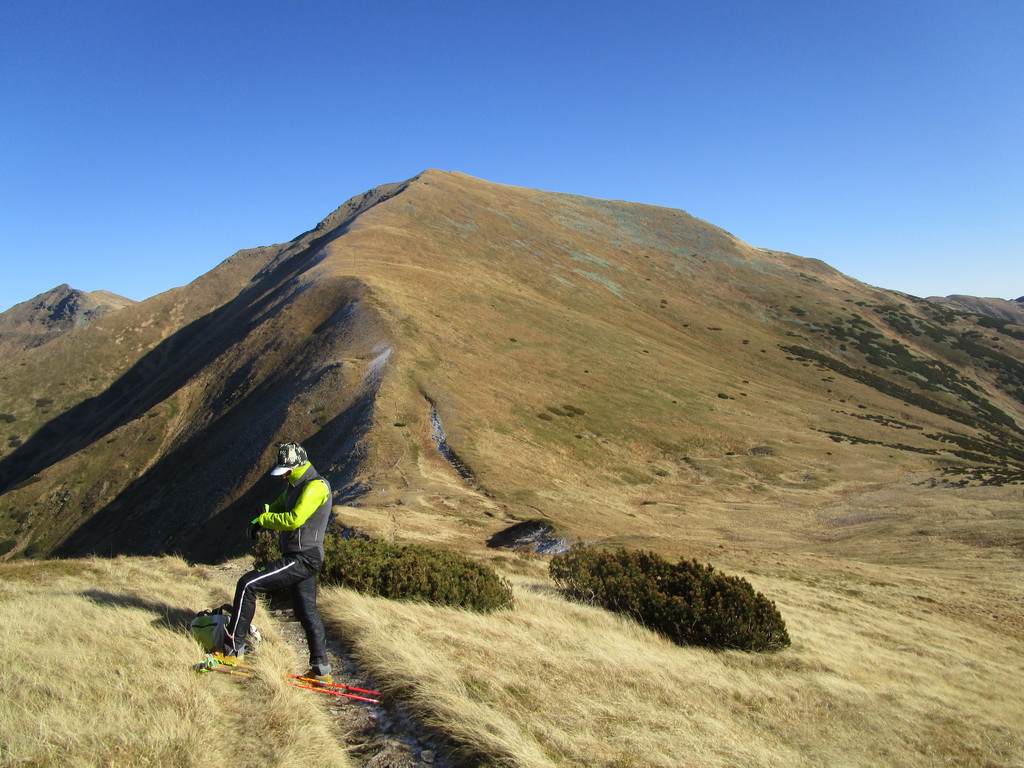 Spomínam to hlavne kôli tomu, že počas krátkych jesenných dní sa človek ľahko dostane do časovej tiesne. A spomínaný hrebeň by nám bol ušetril trochu času. Okrem perfektných výhľadov mi v pamäti ešte zostala spomienka na vysadenú kosodrevinu. Pri pohľade zhora ju človek ľahko rozozná. Som rád, že tam je, bez nej by tam zostala pastiermi vyklčovaná pustatina ľahko podliehajúca erózii.