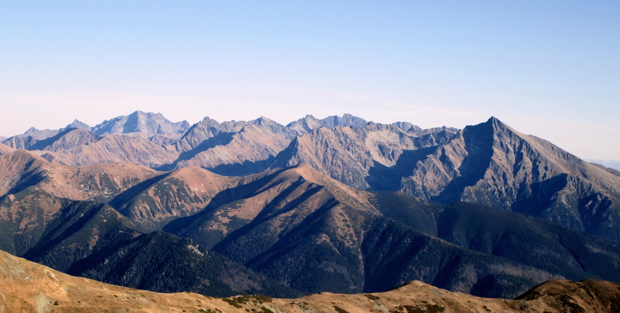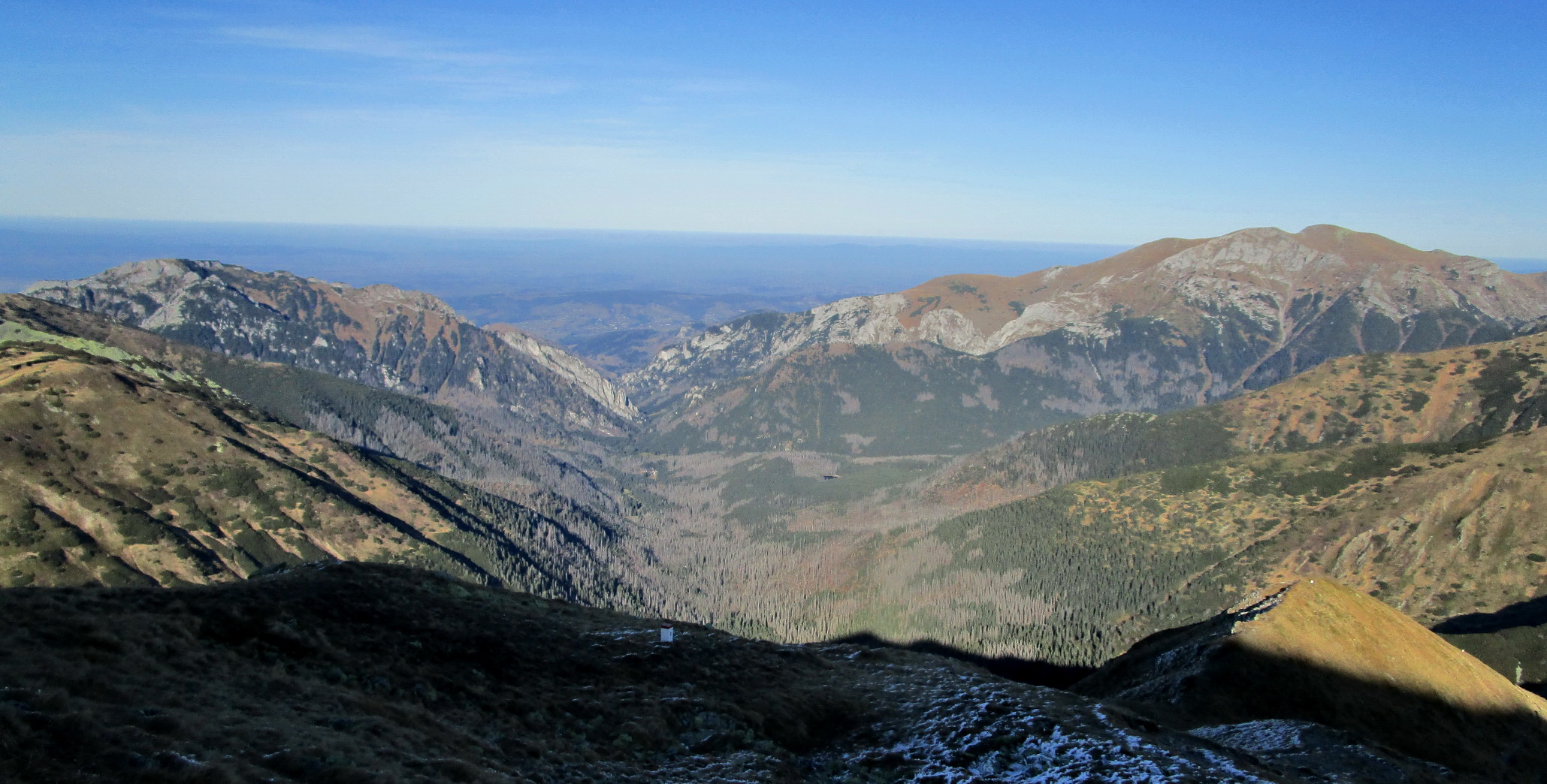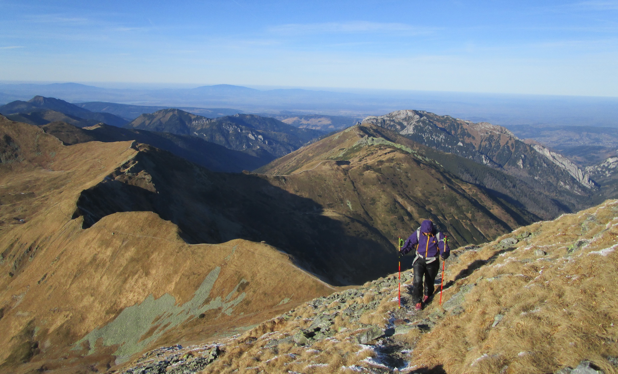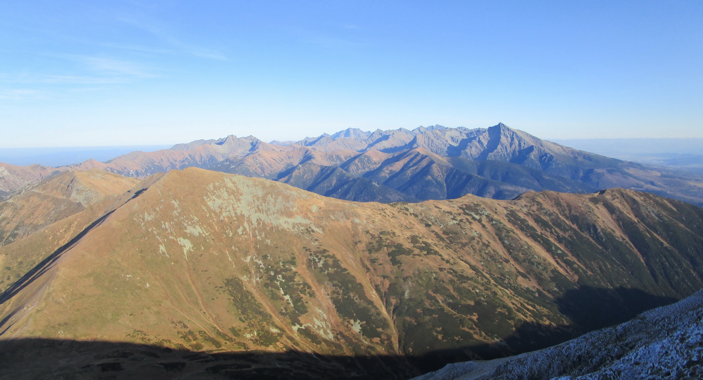 Spomínam to hlavne kôli tomu, že počas krátkych jesenných dní sa človek ľahko dostane do časovej tiesne. A spomínaný hrebeň by nám bol ušetril trochu času. Okrem perfektných výhľadov mi v pamäti ešte zostala spomienka na vysadenú kosodrevinu. Pri pohľade zhora ju človek ľahko rozozná. Som rád, že tam je, bez nej by tam zostala pastiermi vyklčovaná pustatina ľahko podliehajúca erózii.
