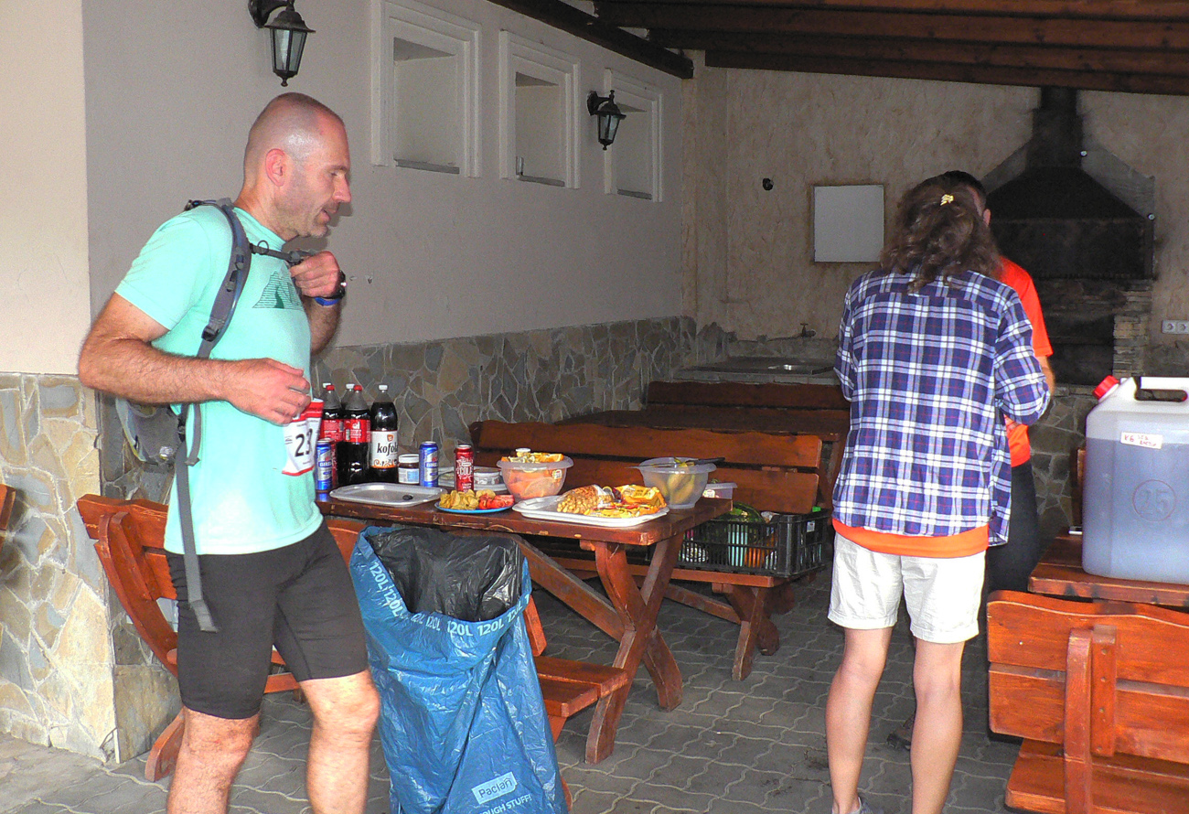 Ale z trávnika, od misky s kyslými uhorkami, sa dvíha René Mráz, ktorý už mal byť dávno niekde na Minčole. Že ma čaká, ale že už pomaly ide, že ho mám dobehnúť. Som dáky naspídovaný, ale pár mozgových závitov ešte funguje a tie mi hovoria, že „na tuky ďalej zájdeš“. Tak beriem slaninu, syr, uhorky, chlieb, tlačím to do seba a cupkám. Dlhý asfalt, najnižší bod trasy na moste cez Váh a dlhoooo hore na jeden z jej najvyšších bodov, na Minčol. Slnko zaň pomaly padá, s ním aj teplota. Začína večerná zábavná relácia „Možno príde aj vrtuľník“. Na Piatrovej ďalšia psychiatria, keď stovkári si idú na Minčol rovno, ale my musíme obchádzkou cez Šaračníky. Aspoň si navzájom poprajeme šťastnú cestu.