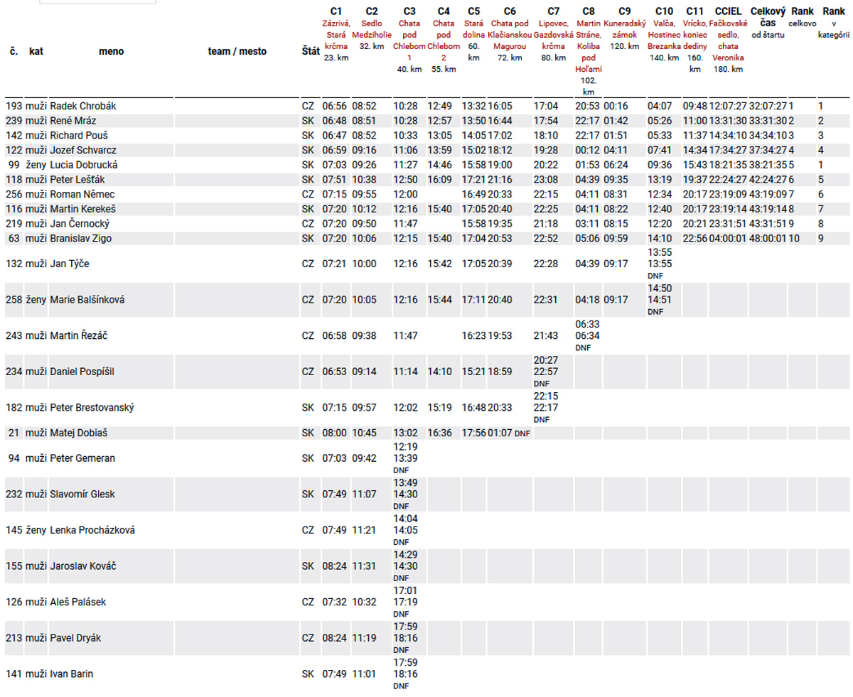 V sedle pod Hnilickou Kýčerou ešte stíham občerstvovačku, určenú síce len pre stovkárov, ale nevyháňajú ma. Dúfam len, že za zneužitie nedostanem v cieli DSQ, hehe. Tento úsek medzi Valčou a Vríckom má najdlhšiu vzdialenosť medzi dvoma kontrolami (asi 27 km), tak som rád, že sú horskáči ešte tu. A aj poslední dvaja stovkári, len im chudákom nie je moc do reči. Už som zase sám, René sa s brieždením konečne prestal brzdiť a už je pol hodiny predo mnou.