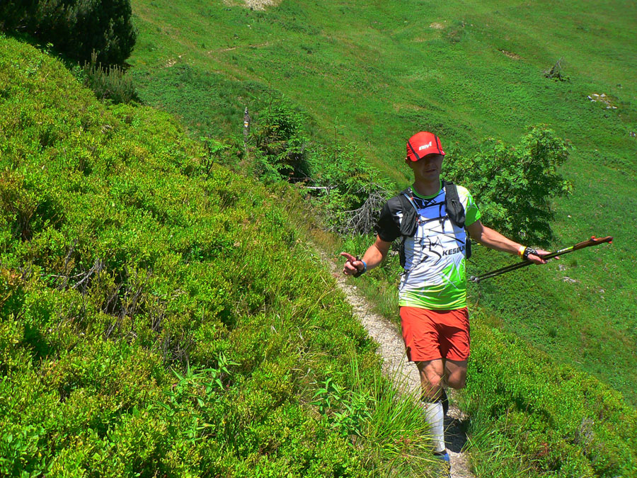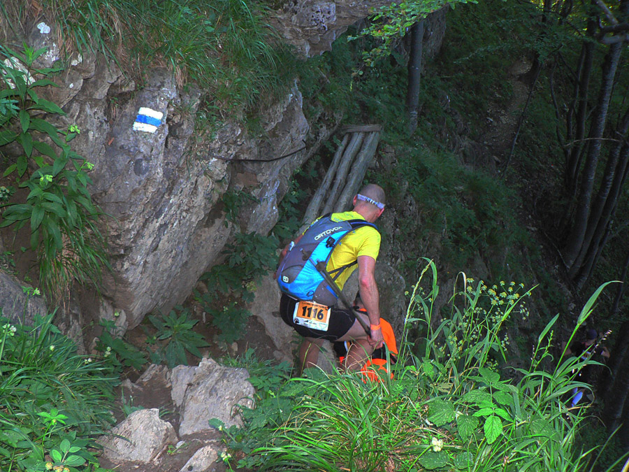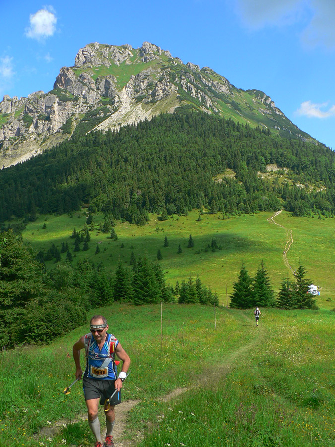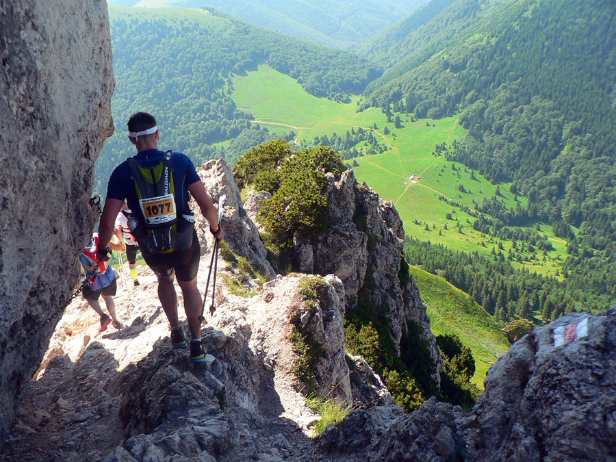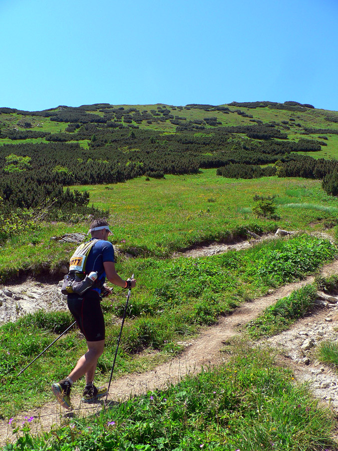Tá skalnatá obluda nad nami je známa, všetko jasné: dlhé, strmé, technické. A zbeh na Medziholie vôbec nie je choďák, a už vôbec nie behák. Prežili všetci. Akurát že už zhora pečie, našťastie menej ako vlani a aj vetrík pomáha. A nie je dusno, nebude to hádam až také zlé...