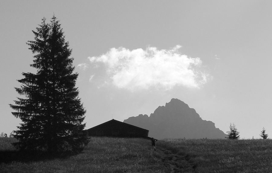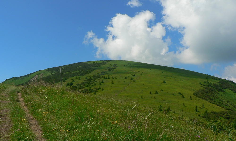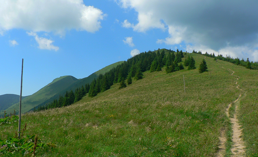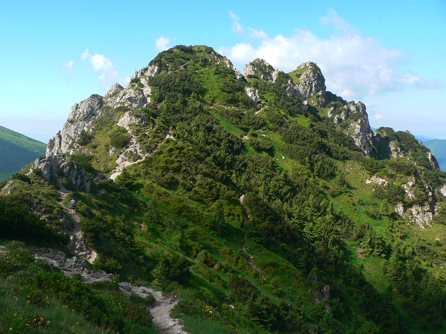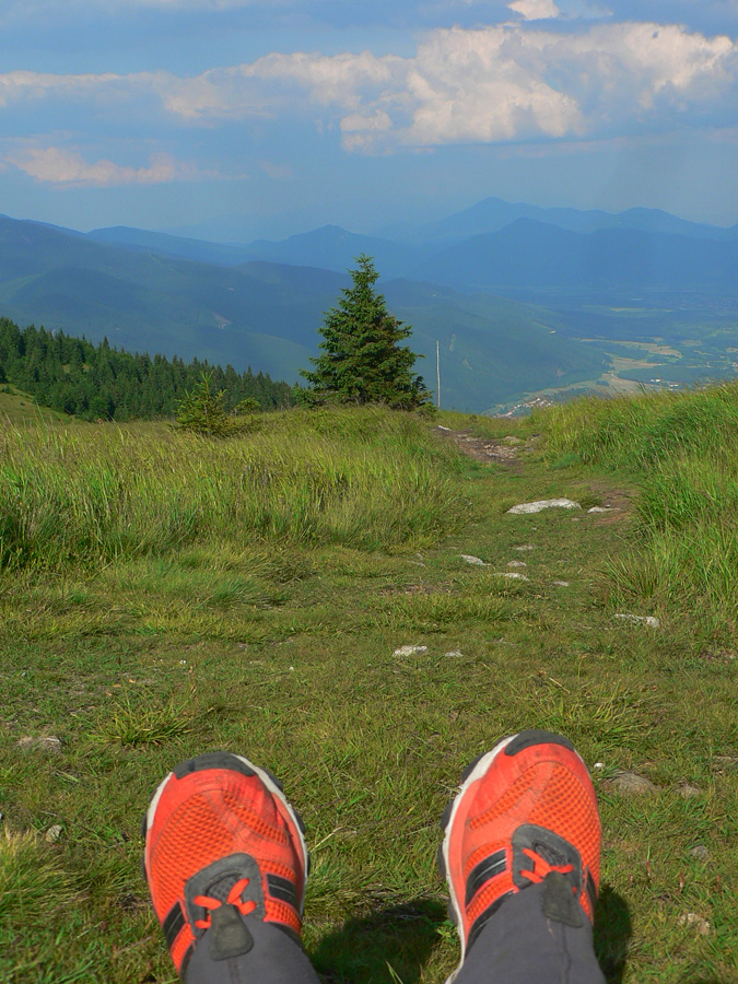 Konečne nad lesom, konečne pofukuje, ale prílev kozmických síl dáko vyschol. Vlastne už smerom na Rozsutec začal, premýšľam. Ale to nič, to len si telo hľadá svoj rytmus, však? V hlave mám pesničku od Elánu („Moje telooo si so mnou robííííí, čo chceee...“). Rytmus sa hľadá aj v zbehu, aj vo výšľape na Grúň a Steny, v traverze na chatu pod Chlebom... A niet ho nikde, len ma každý obieha. Výhovorka: teplota rastie, moc nefúka, treba sa šetriť do druhej polovice.