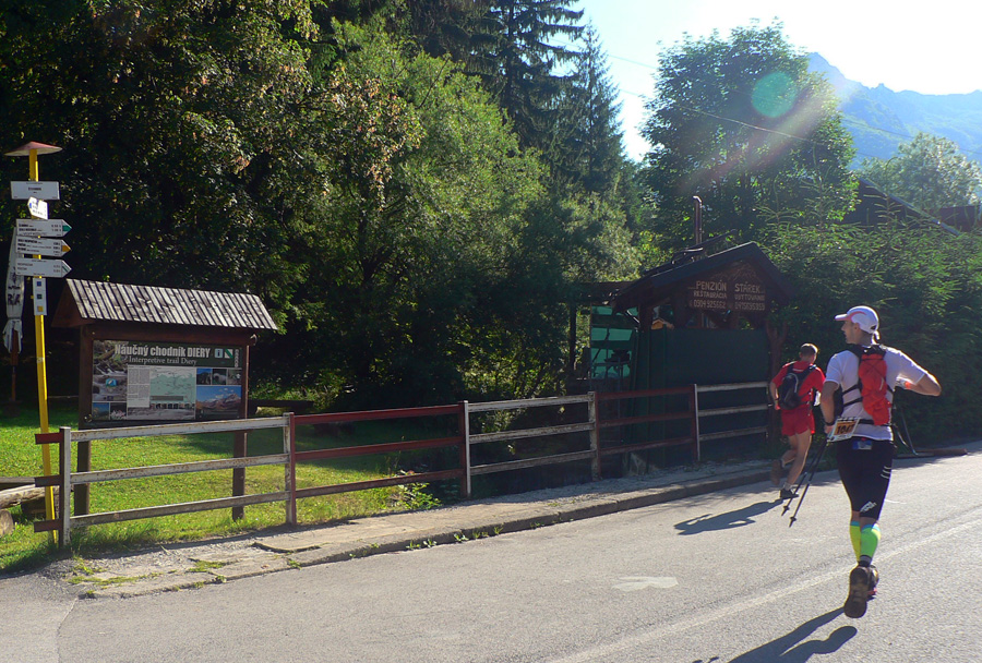 V doline na ceste prvá živá kontrola, trochu asfaltu pod lanovku a príjemný traverz na chatu pod Grúňom. Na upokojenie vylágrovaných členkov. Cítim prílev sily, ľahučké nohy, až ich musím krotiť, áno, takto to dnes chcem! Ale hneď nato rozcvička pre predné stehenné svaly: brutus dlhý a strmý zbeh do Štefanovej, tento zatiaľ len po zvážnici, technicky zatiaľ nenáročný. Brutalitu treba dávkovať postupne, hehehe...