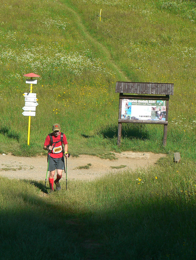 Kontrolóri na Magure vychechtaní, spokojní, v tieni si sedia, nepochopia... A ja rozmontovaný ako lego. Hlava funguje, nohy by šli, ale slabý som ako mucha. Švédske stoly síce lákajú, ale jediný benefit, ktorý si odtiaľ pamätám, je lavór so studenou vodou. Už sa niet kam ponáhľať, tak vegetím čo to dá, lebo viem čo ma čaká: zostup na dno mordoru. A keď sa cez kotlinu pozriem na protiľahlé Martinské hole a uvedomím si, že z toho dna sa mám vydriapať hore... No, niekedy dosť nevýhoda znalosti domáceho prostredia :-)))