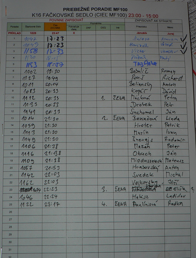 Nakoniec teda dorazilo len 25 tých čo vyrazili z Terchovej, čo teda nik netipoval. Najrýchlejšia dvojka Martin Halász a Jozef Harčarík za kozmických 17:23, prvá Peťa Mücková za 20:33 aj s polihovaním pod Kýčerou :-) Komplet je to v galérii.