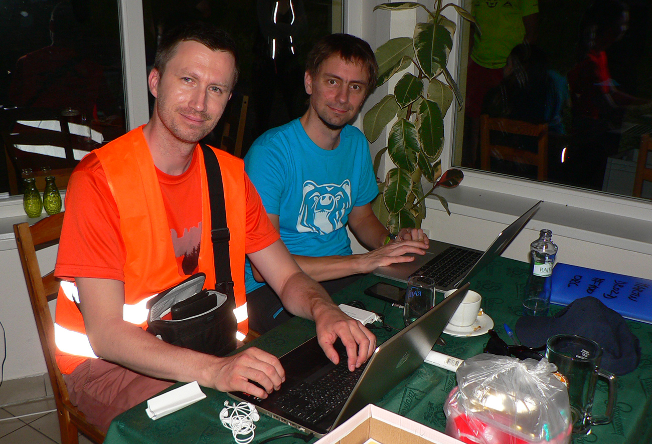 V Terchovej nič nové – v Terchovci to vrelo ako v úli, vraj bol otvorený prvý raz od marca. Tak hádam aspoň zarobil na čapovanom. Prezentácia a socializácia sa prelínali a fičali do noci - kvôli korone hádam o čosi intenzívnejšie, lebo sa ľudkovia dlho nevideli. Povinnú výbavu nakoniec nik nekontroloval a prezentovať sa napriek hrozbám v propozíciách dalo aj ráno pred štartom, ale to zas využili asi len traja. Takže hrozby zabrali :-) Detskú prácu organizátori zneužívali aj tentokrát, aj keď jedna trpaslica od vlani poriadne narástla, ale to bolo len také maskovanie. Inak kinder team makal tiež do noci.