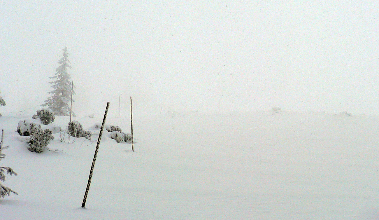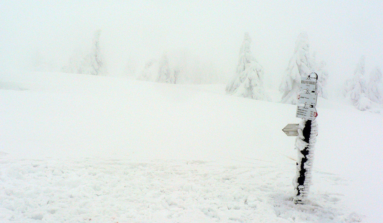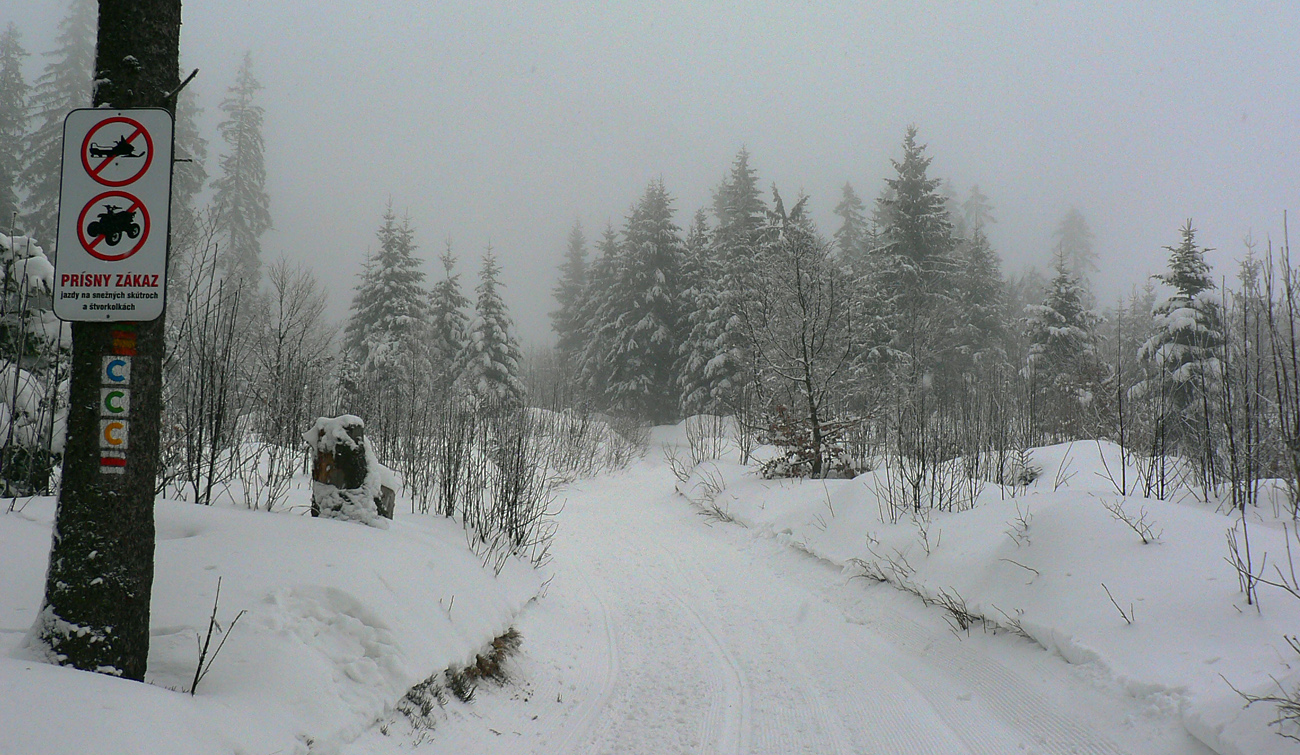 Na raňajky chlieb so syrom, jogurt, mlieko – nech si od tých mliečnych výrobkov neodvykám. Lebo viem, čo ma asi zasa čaká. O dve hodinky teda skáčem z busu na Donovaloch do lyží a do polotučnej hmly. O chvíľu, vyššie na Polianke, už je plnotučná, ale sú tu ešte domy a za rampou stromy, to sa ešte dá. Koľkokrát som tadeto už išiel... Ale ani raz týmto smerom, sranda :-)
