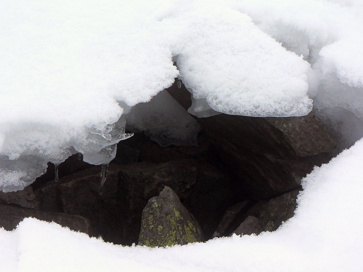 Až pod Latiborskú hoľu. Aspoň si myslím, že už som tam. Lebo z hrebeňa sa odpája stopa doľava dole, to by mal byť ten neznačený zjazd na cestu nad Liptovskou Lúžnou, ktorý chcem použiť. Ale bol som tu len raz a to bolo pekne! Tak pekne hore na hoľu, či je to ozaj ona :-) Je, tak už spokojne nazad. Hrkocem poriadne a len dúfam, že je to len ľad, čo sa tak ozýva. Lebo snehu tu moc nie je, ako furt.