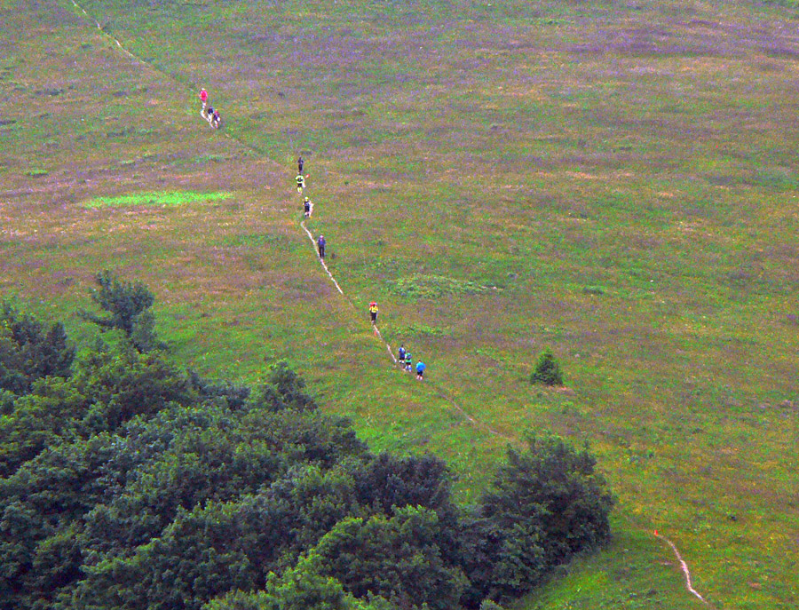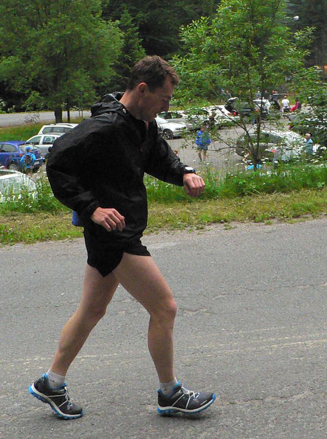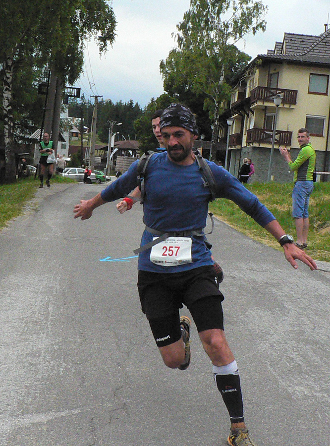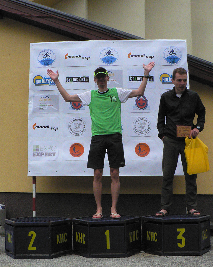 No a to hlavné: ako bolo po výstrele prvú hodinu netuším, lebo som sa vyštveral skratkou rovno na Kamienku. Tam po hodinke a pár minútach dorazil Kamil Vyhnička s Jacekom Žebrackim, hneď za nimi skupinka asi siedmich chrtov. Prvá liga, mal som dojem, že sa po sebe pozerala, čo kto spraví, a nehnala sa dáko. Normálne ako keby sa vpredu taktizovalo :-) Na Chochuľu vraj ako prvý ešte vybehol lanský víťaz Kamil Jezierski, ale hovoril, že na asfalte nad Donovalmi mu totálne došlo a v cieli sa objavil s komfortným náskokom štyroch minút nový človek na tomto podujatí, „cestár - maratónec“ Július Kaľavský. Kamila ešte trhol Lukáš Trizna, o pár sekúnd. Štyridsiatnikov vyhral Zdeno Longauer a päťdesiatnikov Draho Sliačan.