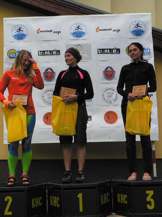 Prvú ženu som „odlovil“ niekde v Krížskom sedle: Alena Slaná na to, že šla prvý raz, o riadny kus viedla pred dvojicou Silvia Petrjánošová – Alžbeta Železníková. Štvrtá a piata už výrazne strácali, prebehli okolo mňa až na masíve Prašivej. Po Aleniných žalúdočných problémoch si po víťazstvo dobehla Silvia (vynahradila si vlaňajšie blúdenie), komfortne o 13 minút pred Alžbetou. Alena tretia.