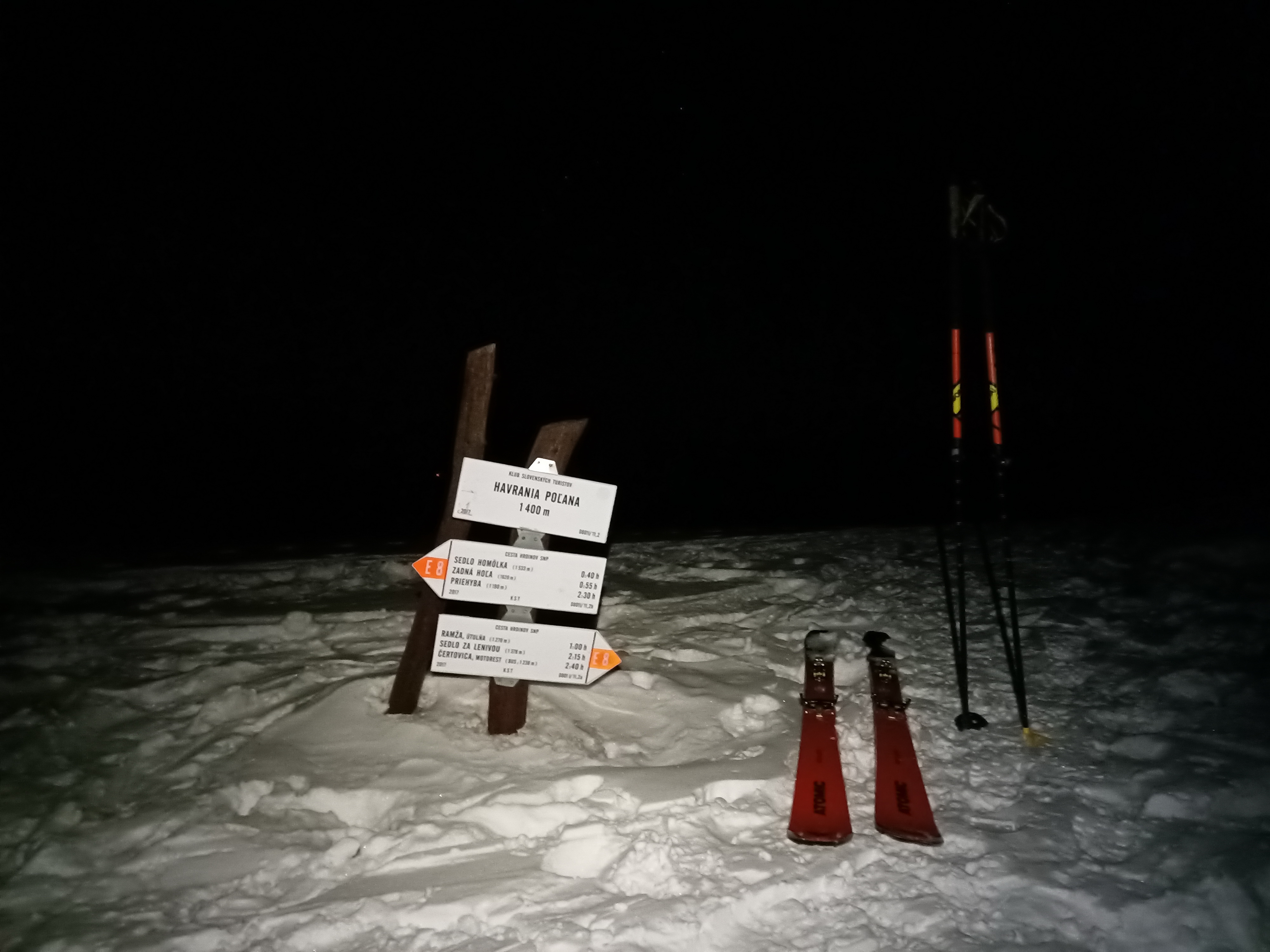 Na holi jasná noc a úplné bezvetrie, neviem či som to tu vôbec niekedy zažil. Hore sa nezdržiavam, pijem teplý čaj, ktorý ešte z domu nestihol vychladnúť, strhávam pásy a púšťam sa hrebeňom smer východ, pravá hrebeňovka môže začať. Snehu je tu málo, aj to málo je zamrznuté. V tej tme chytám sem - tam kameň, sem - tam trávu, darí sa ale na lyžiach kľučkovať bez vyzúvania. Stredná hoľa, Orlová, Bartková. Niečo korčuľujem, niečo šliapem na pásoch, niektoré úseky s lyžami v rukách. Pohyb, na ktorý si budem musieť počas najbližších hodín zvyknúť, nakoľko ma rýchle striedanie týchto činností čaká ešte veľakrát. Minulý rok som sa celkom vytrápil na ľadovom zjazde z Bartkovej do Žiarskeho sedla. Teraz je tu parádny sneh, a tak som pomerne rýchlo a jednoducho v Žiarskom sedle. Zo Žiarskeho sedla opäť kúsok na pásoch, potom pásy strhávam a korčuľujem až nad Andrejcovú, kde sa púšťam bez zastávky okolo útulne na rázcestie Pod Košariskami. Úplný kľud, len škrípanie lyží na ľadovom snehu. Krátky, pekný výstup na Veľkú Vápenicu si užívam, i keď je tu tvrdo. Z Veľkej Vápenice obávaný zjazd do Priehyby, ktorý ma strašil posledné dni. Minulý rok som sa tu vytrápil, a to som ho išiel cez deň. Je to nepríjemný, strmý zjazd po úzkom chodníku, svahy sú husto zarastené, kde tu padnutý strom. Sledujem vždy nejakú stopu, ani jedna nepoteší. Našťastie tu nie je tvrdo, tak aspoň tie ľahké pády nie sú bolestivé. Po chvíli utrpenia som konečne v Priehybe, kde si dávam prvú dlhšiu občerstvovaciu pauzu.