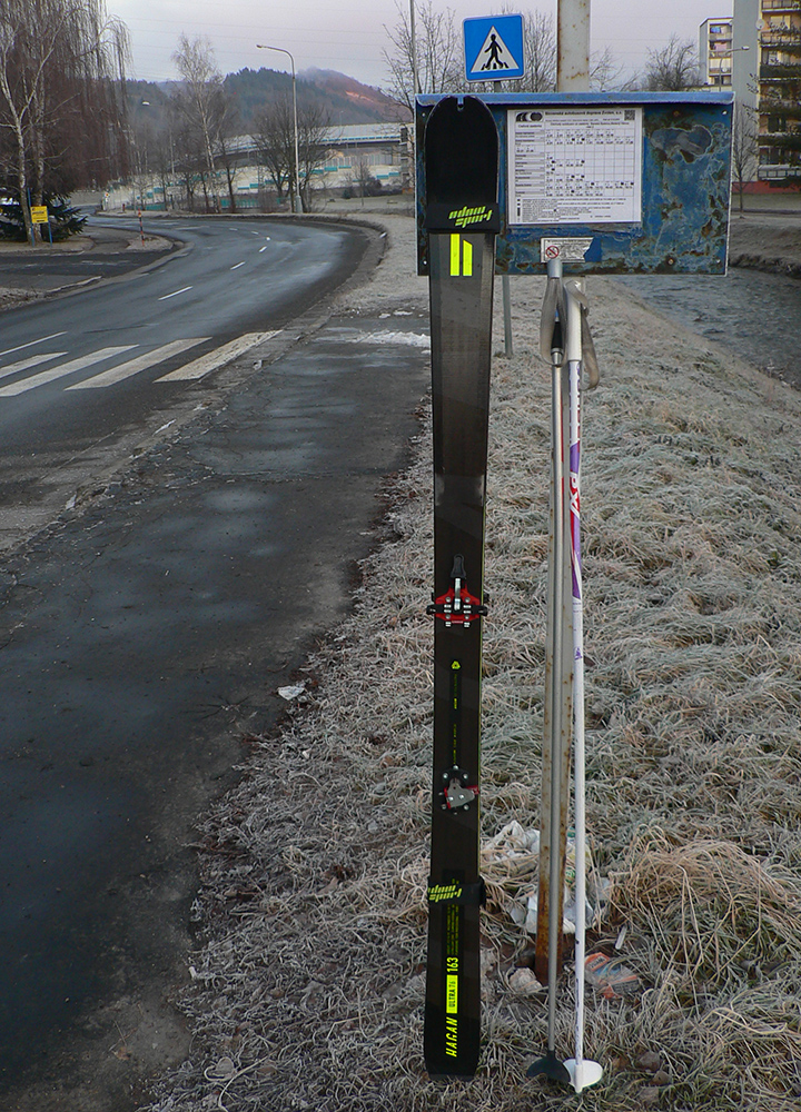 Mrazivo suché nedeľné ráno v BB a namiesto auta prichádza len sms, že akcia je zrušená - kvôli boľavému zubu. Nastúpiť by mala mohutná improvizácia, ale stojím na zastávke a o pol hodinu ide bus na Donovaly. Ešte že tak... Chvíľu rozmýšľam, či sa neprezujem a nepôjdem si hore radšej len zabehať, aj tak bude betón. Ale treba vyskúšať, ako mi sadnú lyžiarky po úprave skeletu. Tak čakám.