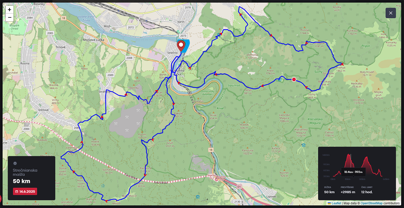 Kde bolo, tam bolo, už siedmy raz sa stalo, že strečniansky KST Uhlík zauzlil uzlík na miestnom štadióne. A od toho uzlíka natiahol dve sľučky, na opačné strany, a tak uviazal MAŠĽU. Väčšiu, ako nosil Hviezdoslav. 50-kilometrovú, navyše s poriadne výživným a zubatým profilom: od Váhu až na hrebene Krivánskej aj Lúčanskej Fatry, takmer 3000 výškových. Ani polovičná trať neprišla skrátka, na 25 km 1700 výškových, slušný záhul, nie? Navyše UHLÍK sa znovu spriahol s páchateľmi zo Slovak Ultra Trail, znova spáchal parádne počasie, bezoblačne júnové, ideálne svieže na štarte a príjemne teplé v cieli. K tomu ľudské limity (12/8 hodín, veď aj pre turistov), na trati aj v cieli parádne krmelce, no nechoď sa zničiť! Aj prihlásiť sa dalo ešte doslova pár hodín pred štartom, limity štartujúcich tiež boli nastavené štedro, ani sa nenaplnili. Ale zato sa do Strečna nazliezalo v sobotu 14.6. asi 400 účastníkov, zaparkovať bol problém. Ako správny lenivý suporťák na krátkej trati som si tentokrát strihol len druhú polovicu trate cez Minčol. Celá vyzerala podľa Termínovky takto, skoro ako furt: