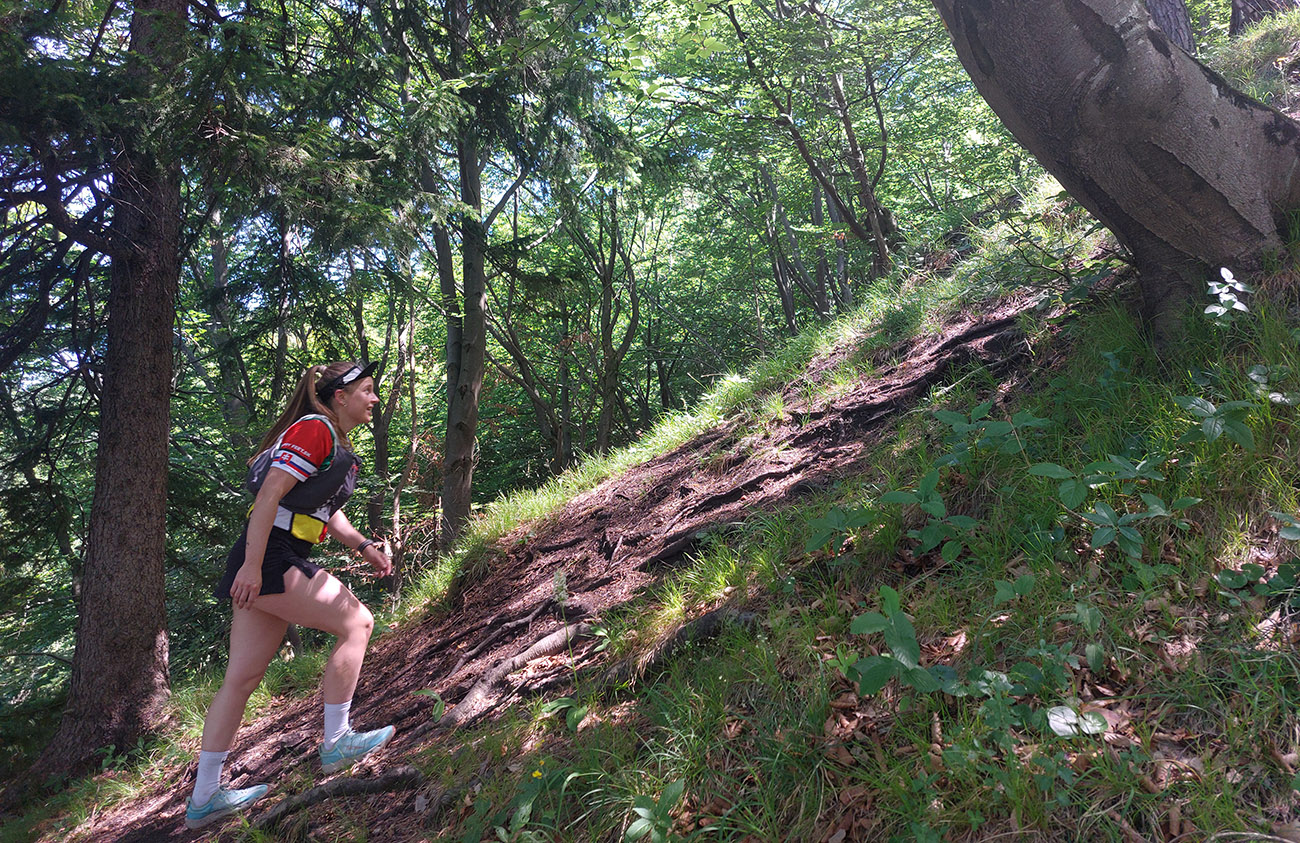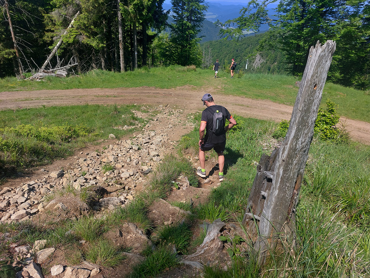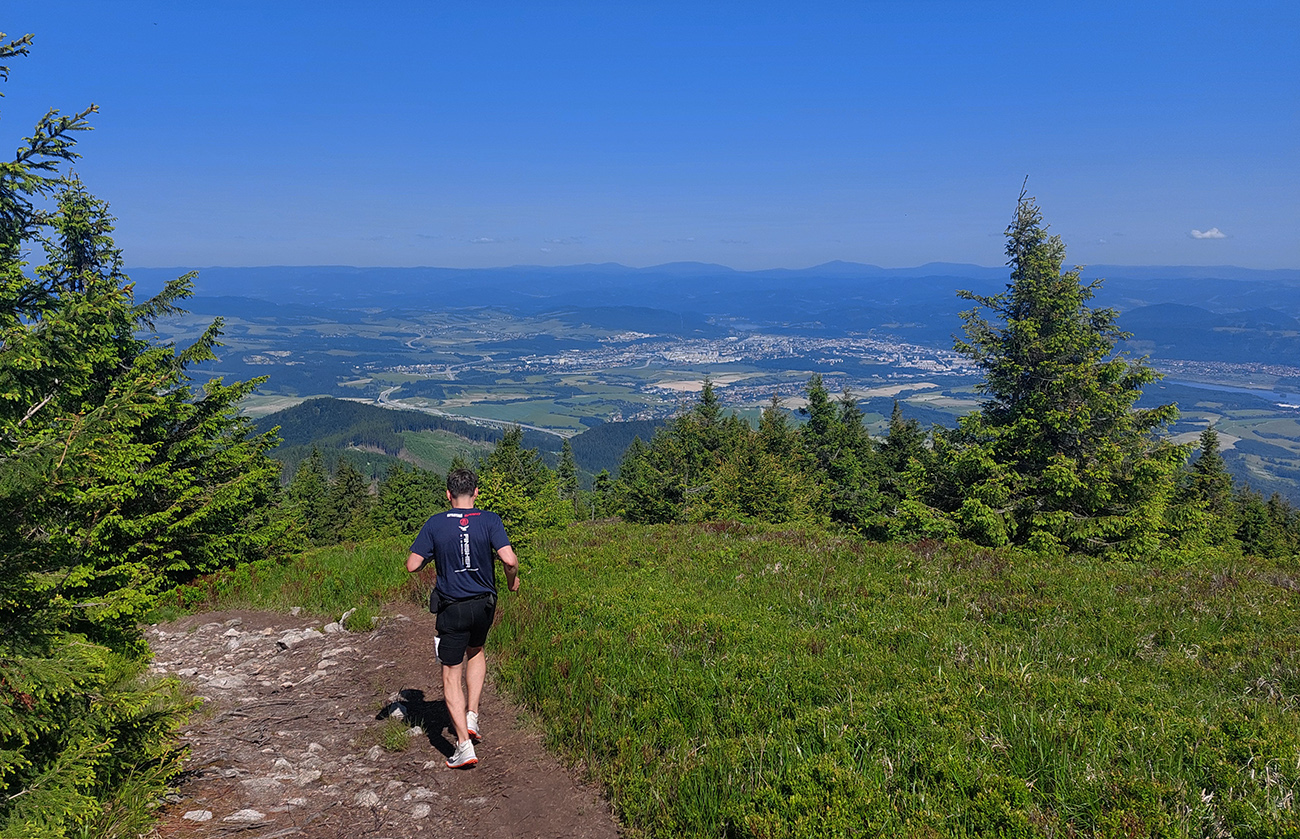 Aj na ceste dole pekné lesy naokolo nevydržali dlho. Ako sa sklon zmiernil z brutálnej a kamenisto-korenistej úvodnej strminy do pohodlnejších zvážnic, otvorili sa ďaleké panorámy – najmä do vyholenej Višňovskej doliny.