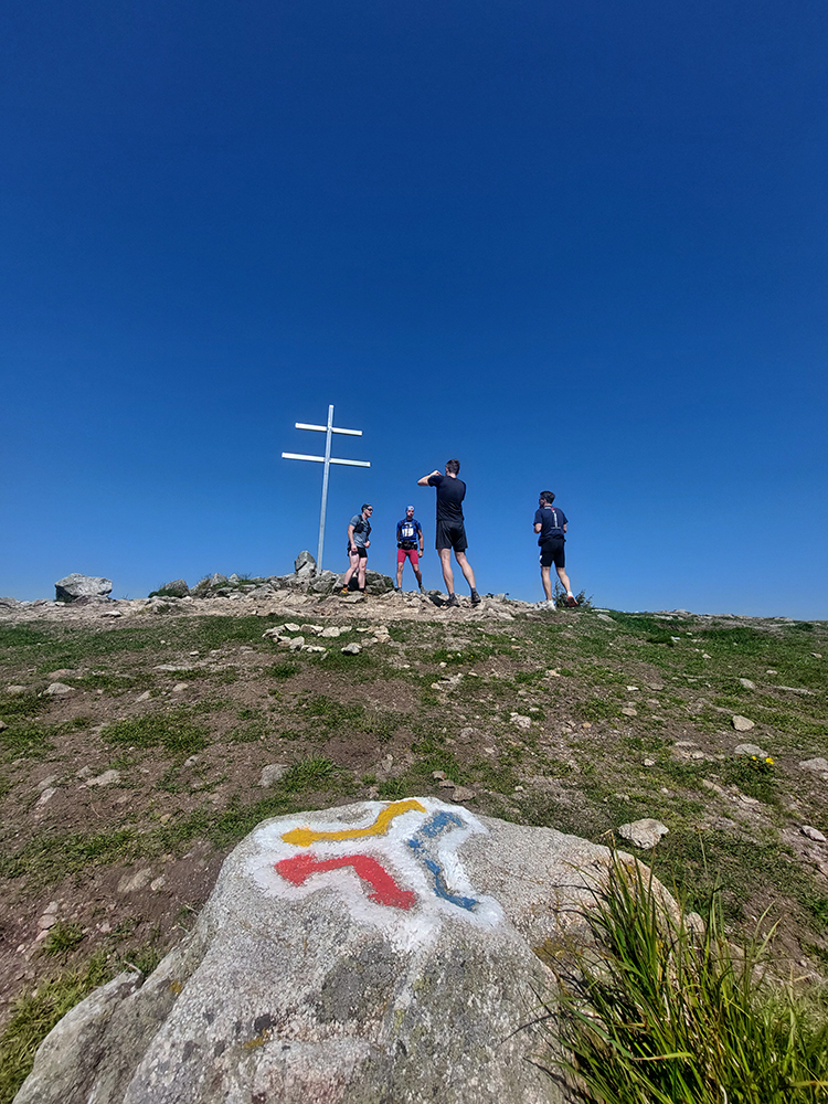 Druhý krmelec pri dele v sedle Okopy v príjemnom chládku s miernym vánkom, ale žiadne rozmaznávanie! Lebo nasledovalo len krátke prehupnutie cez vrchol Minčola, a nevyhnutnou rozhľadovou a selfíčkovou zastávkou pri dvojkríži, a nástup do brutálneho a dlhánskeho zbehu.