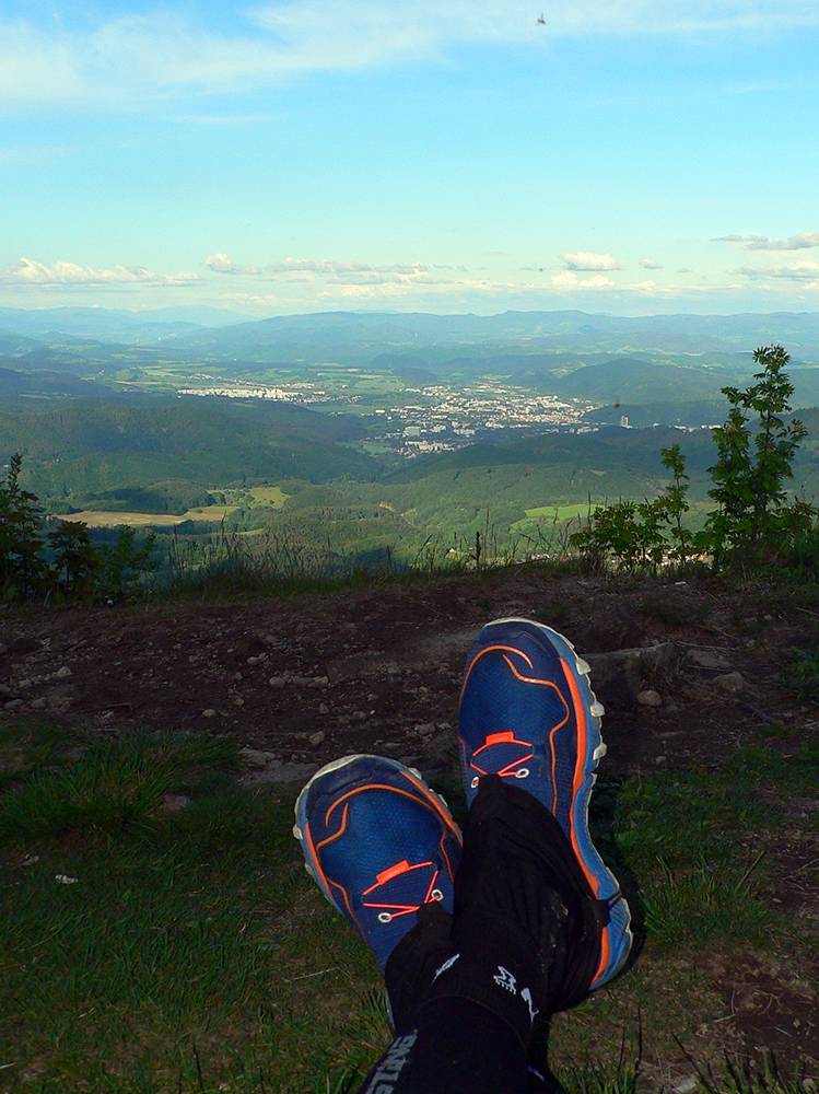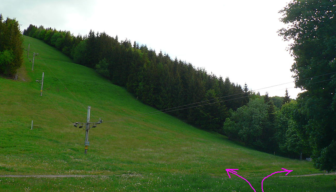 Polhodinka na Panský diel a kompletný prehľad o celej trase ako na dlani. Ide sa dole, poklusom sklus, strmo po modrej. Botičky držia a na prstoch netlačia, presne ako som čakal. Na lúkach pod Hrádkom sa od značky odpájam doprava a skratkou zbieham do Sásovskej doliny. Ešte som rýchly a to je moje jediné šťastie, lebo ma na piknikovej lúke skoro odchytávajú rozjarení „grilovači“. Urýchľovač zhora im účinne pomáha do nálady, ani krčmu nepotrebujú.