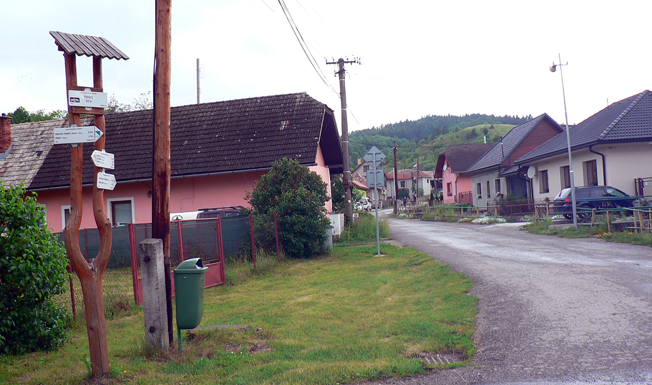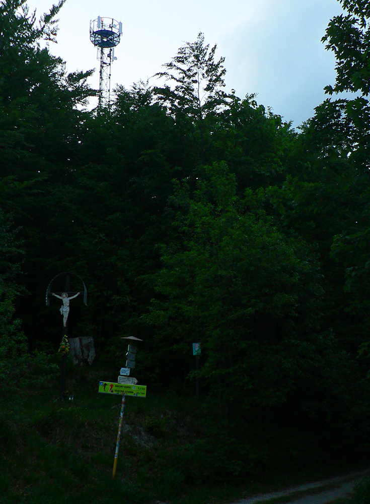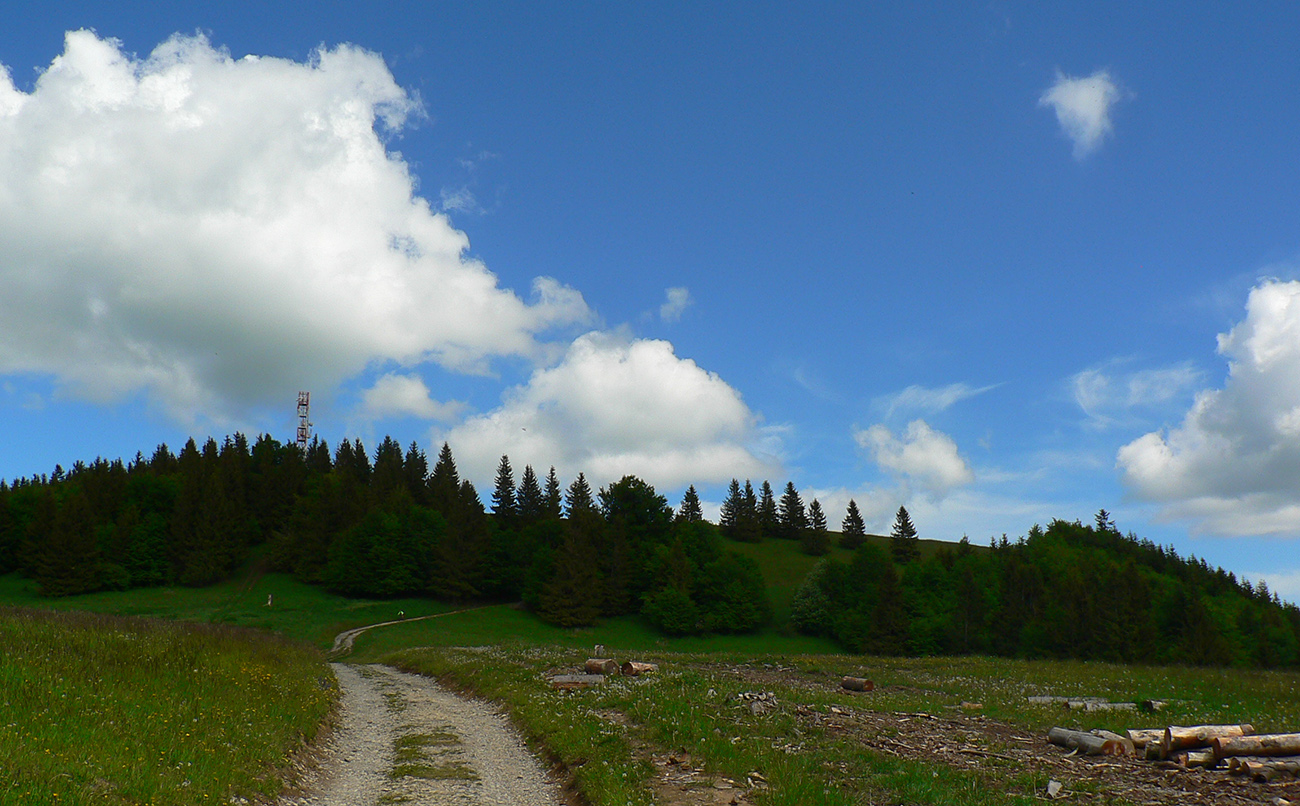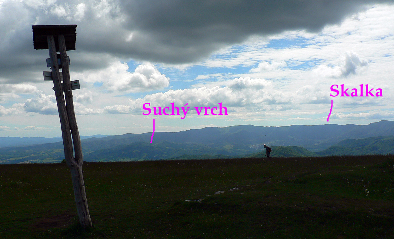 Cez Jakub popri kostole a už stúpam na Laskomer. A vôbec mi to nechutí. Hovorím si, že to bude tým teplom bez vetra a popoludňajším útlmom, ktorý ma vždy o takomto čase chytá. Laskomer je inak jediný kopec, cez ktorého vrchol sa nedá - kvôli veľkému areálu vysielača. Tak to aspoň ťahám popri plote. Pri zbehu do Laskomerskej doliny plaším poriadneho jeleňa – len metre od najbližších domov, sranda. Potom už „váľov“ v Podlaviciach, ktorý smädného a prehriateho nikdy nesklame. Ani tá krčma hneď vedľa ma neláka. Tankujem už plnú a cez Skubín v ústrety (dúfam, že posledným dnešným) vyhriatym lúkam stúpam pod Suchý vrch.