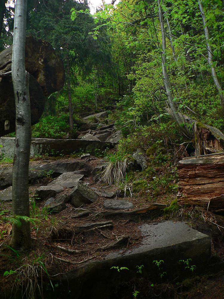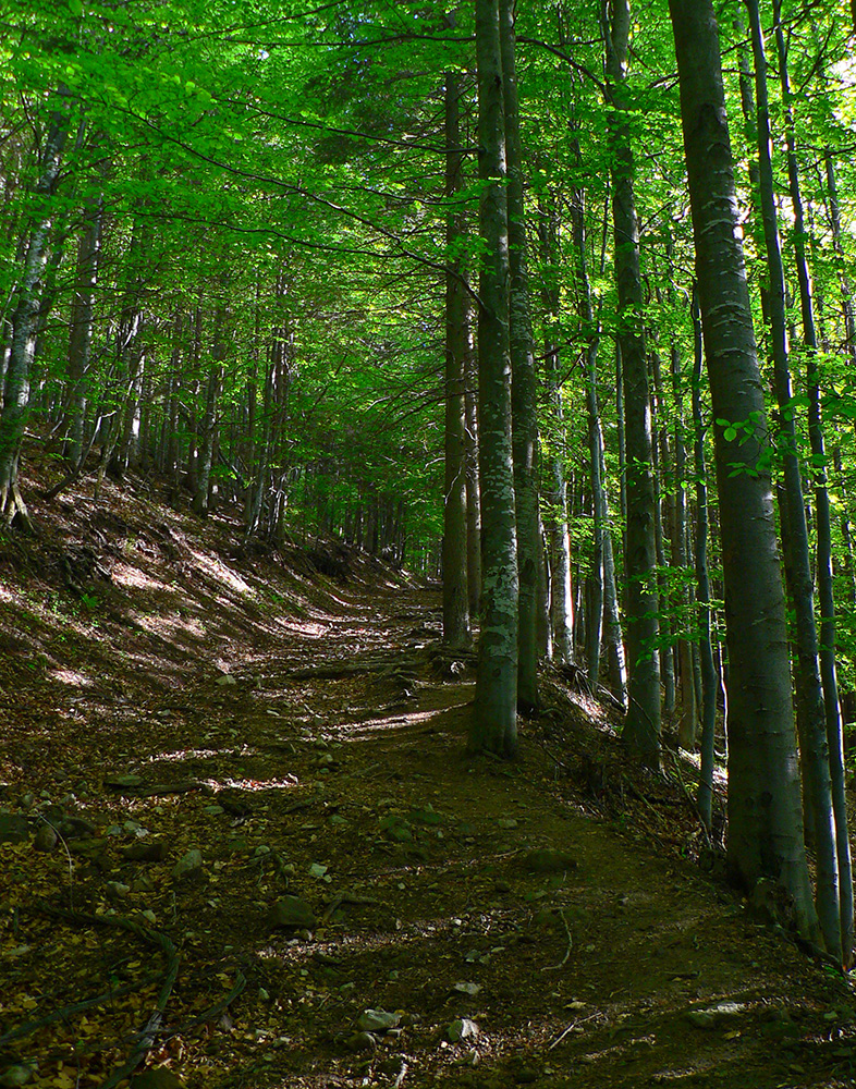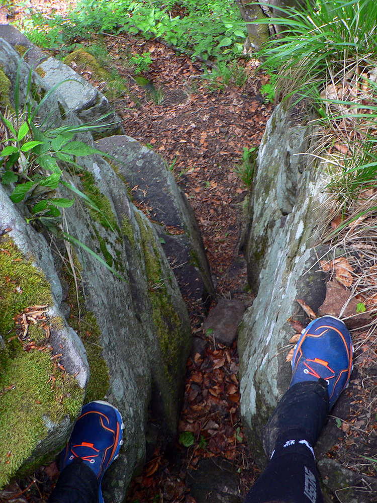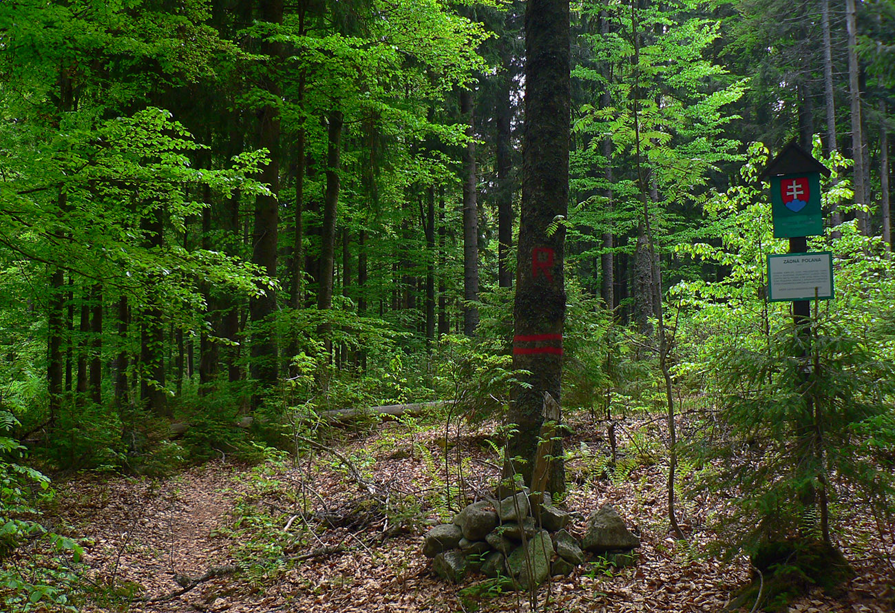 20 strmých minút do stredu Slovenska je ešte trochu šmykľavo krutých, ale potom sa mi konečne ide lepšie, chémia zaberá. Cez ďalší stred Slovenska Hájny grúň - peknými lesmi, v tieni a s vetríkom. No potom začína gradovať divočina „Poľany hory“: doprava, doľava, preskoč, podlez, prekroč, zohni sa, auuuuuuuuuuuuu! Len raz som sa nie a hneď je hlava rozbitá. A čo, veď nohy už sú tiež a už dlhšie... A takto zvesela, potkýnaním vpred, až na Poľanu k hotelu.