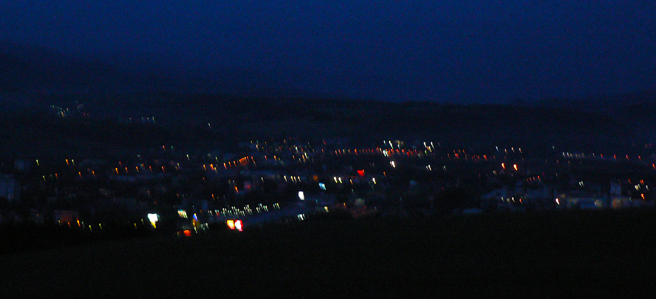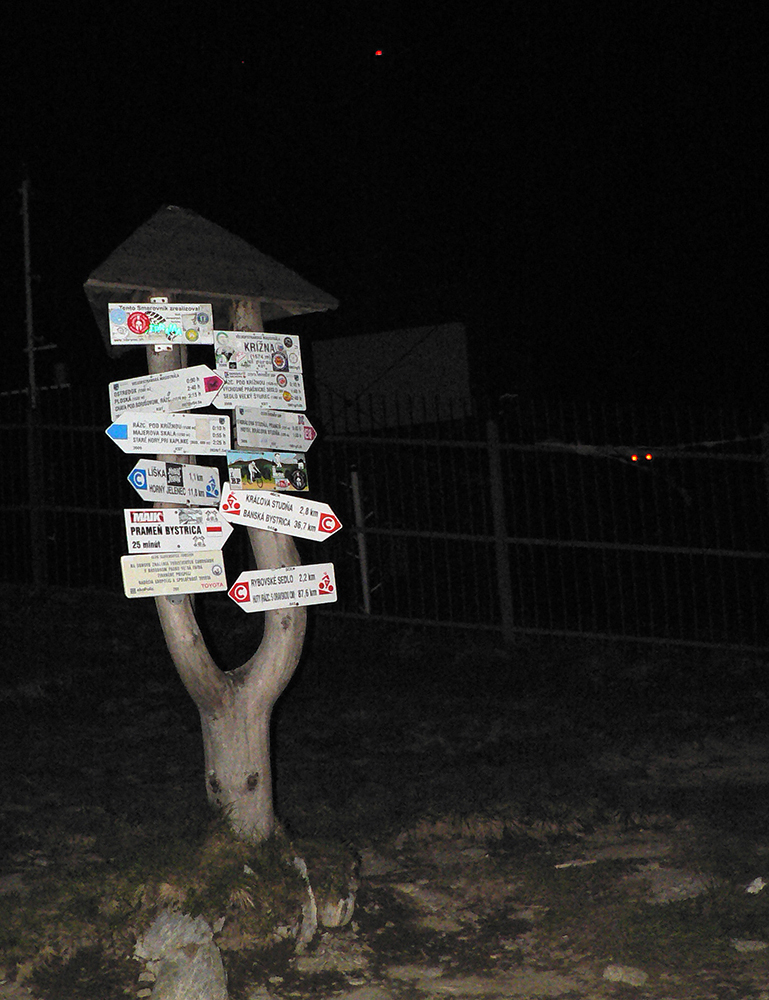 Potom už to našťastie netrvá dlho a v černi podo mnou sa čoraz častejšie začínajú objavovať svetlá Donovalov. A prvý raz začína pršať. Zatiaľ len zo dve prehánočky, dezorientačná hmla na Zvolene a pome strmo dole. Pred silnejúcim dažďom ma kryje zastávka autobusu, mením baterky v čelovke, začína výlet na Prašivú.