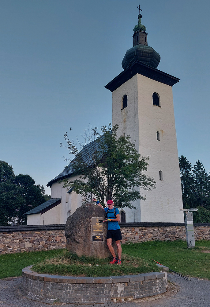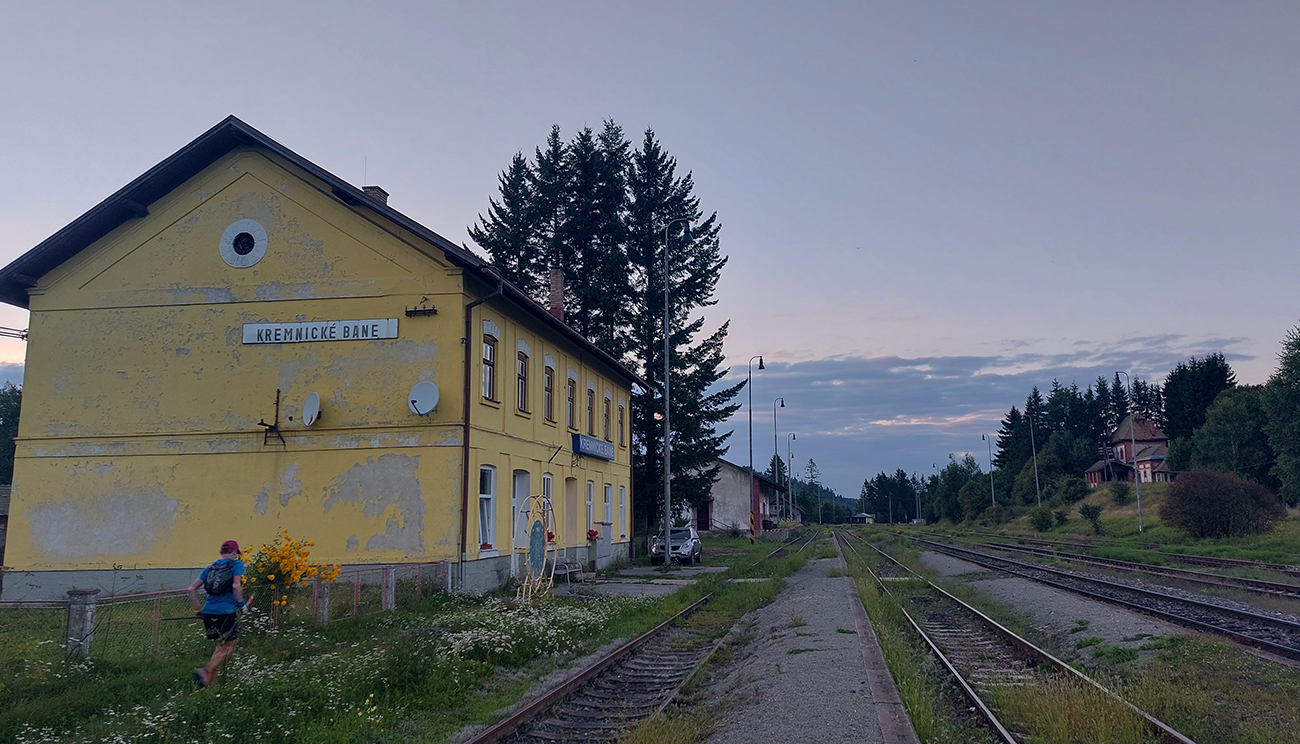 Jesenná stovkárska sezóna sa blíži, treba začať trénovať :-) Zároveň sa mi páčia ultrapobehy, ktoré okrem naháňania kilometrov a výškových metrov majú aj nejakú myšlienku. A toto je myslím presne ten prípad. Keď už máme na Slovensku okrem toho nášho „štátneho“ aj jeden z vari 40 stredov Európy, prečo neskúsiť prepojiť ich a nezistiť, aká je ich vzájomná vzdialenosť? Celé to nakoniec vydalo na nejakých 80 km, ale to nie je až také podstatné. Hlavné je to, že je to pekná trasa a dala sa zvládnuť od prvého ranného vlaku k poslednému večernému, v tomto ročnom období za svetla, a teda v pohode bez naháňania za nejakých 12 hodín. Takže ráno ešte za tmy zraz s Majom na vrútockej stanici, prvým vlakom smer BB a odtiaľ busom do Predajnej. Stúpanie na Ľubietovský Vepor na úvod, odtiaľ krásnou lesno – lúčnou krajinkou cez Hájny grúň (inak ďalší stred Slovenska, len inou metódou vyrátaný) do Hrochote, po miestnej aj oficiálnej žltej značke cez Hornú Mičinú do Vlkanovej, asfaltový prebeh cez kotlinu do Badína, výstup lesom na Laurín a po hrebeni Kremnických vrchov cez Skalku dole do stredu Európy na Kremnických Baniach: